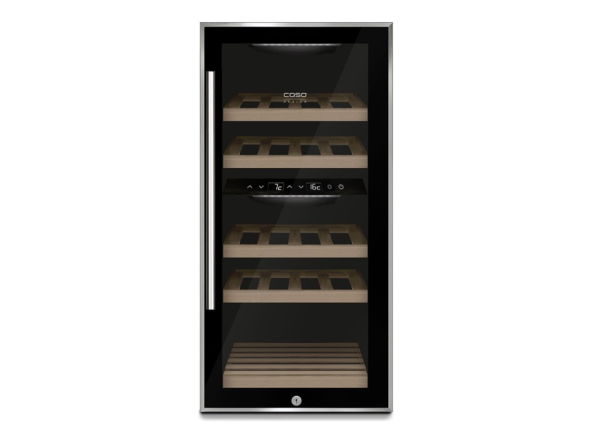 Two separate temperature zones for white and red wine, individually adjustable via sensor touch operation. Smooth running compressors on vibration-reduced feet: provide the calm, quiet location your wine requires