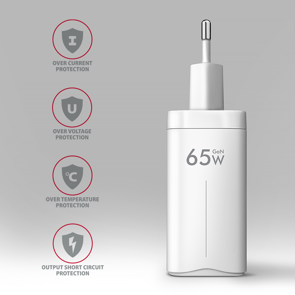 | Producer produkts saime | GaN wallcharger 3x port (USB-A + 2x USB-C), PD3.0/PPS/QC4+/SFC2.0/AFC/SCP/FCP/Apple, 65W |