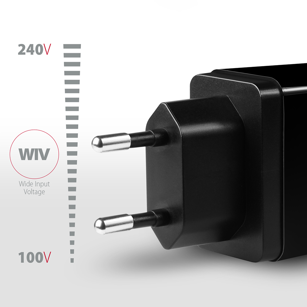 AXAGON Dual wallcharger 240V/2x USB port QC3.0/AFC/FCP and 5V-1.2A, 24W | ACU-QS24