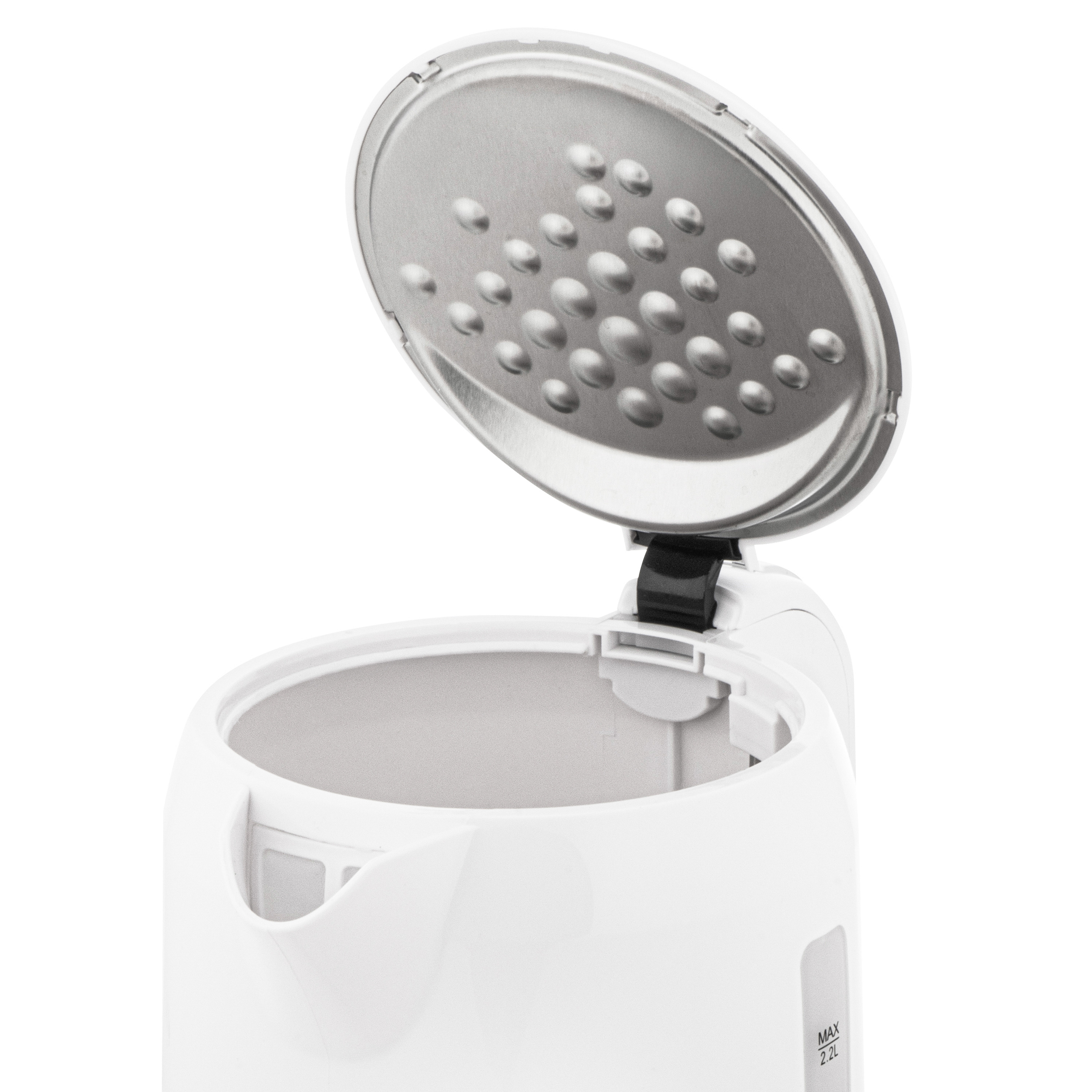 Lid opening button; Water level indicator with scale; Power cord storage