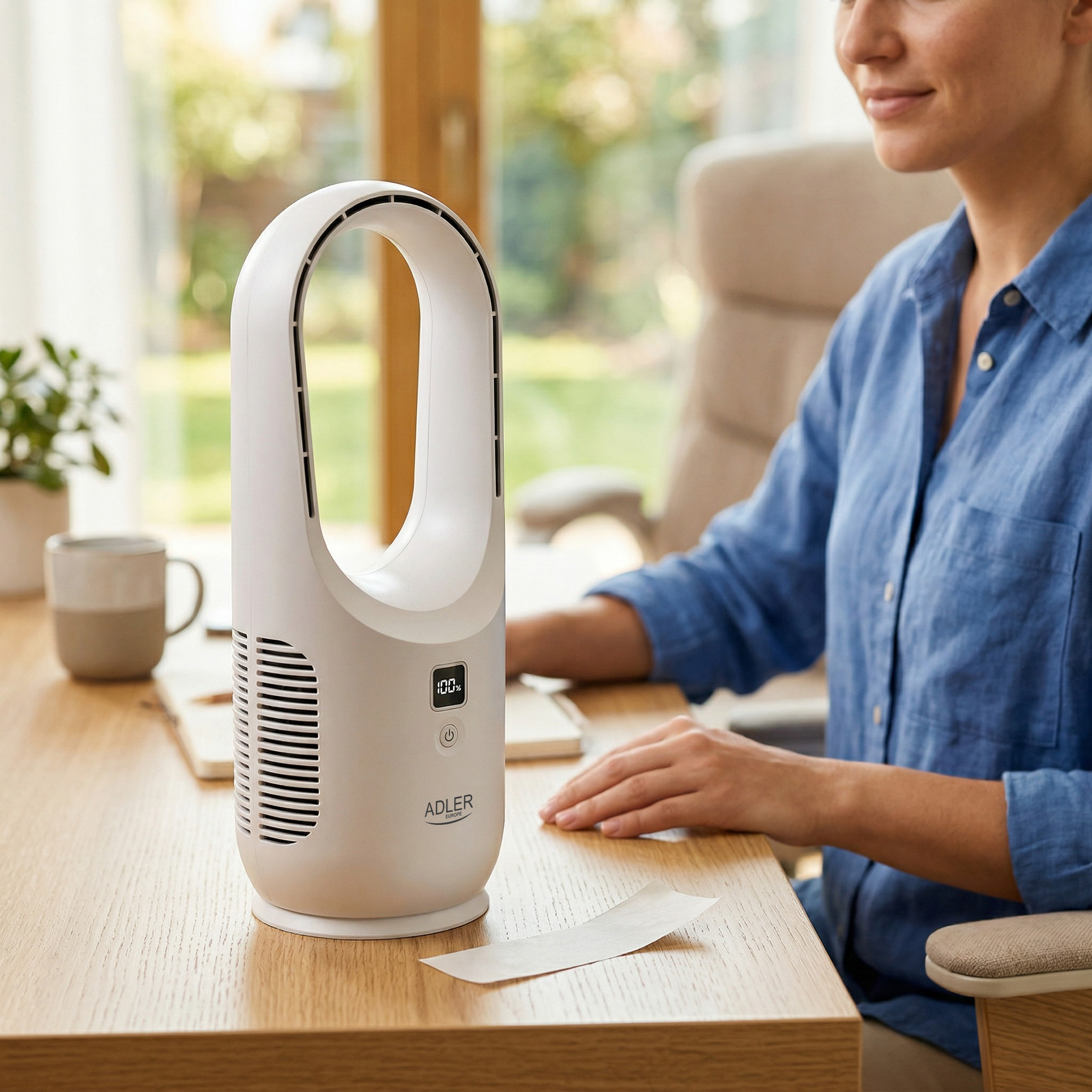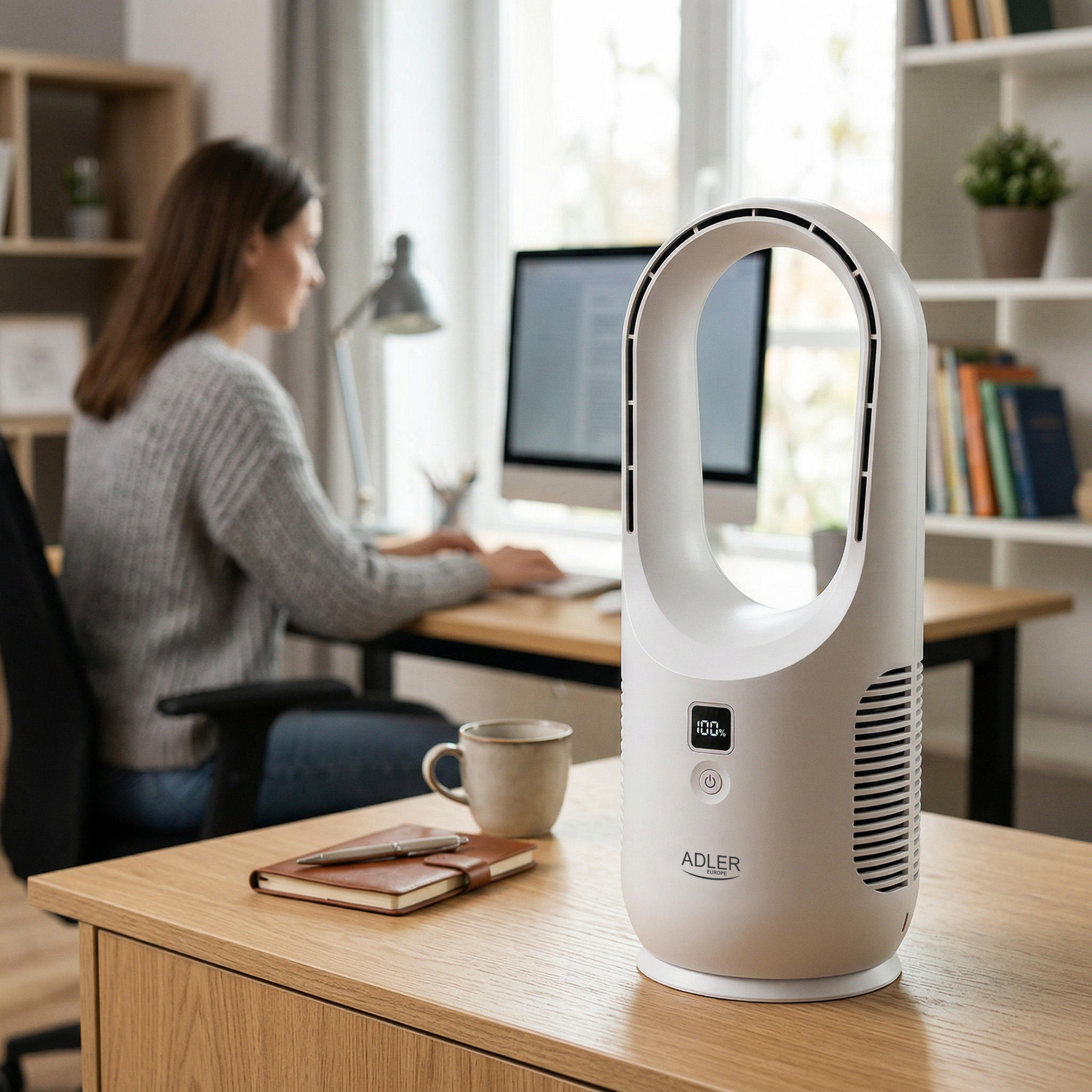 Adler Bladeless Rechargeable Fan | AD 7343 | Desk Fan | White | Diameter 14 cm | Number of speeds 3