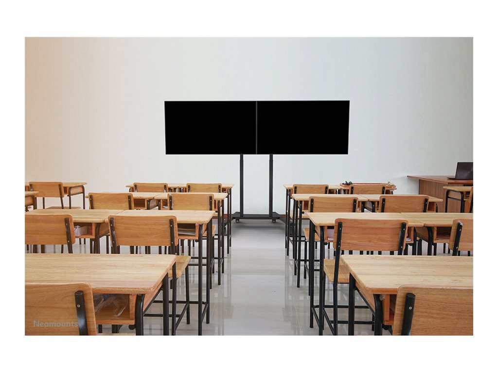 The Neomounts ADM-875BL2 is a dual screen adapter optional for the FL55-875BL1 mobile floor stand and WL55-875BL1 wall stand. The adapter allows the installation of 2 screens from 42" up to 65" with a maximum weight of 40 kg per screen. The height adjustable brackets ensure perfect alignments of the screens. It is possible to lock these brackets, using a padlock (not included). It is also possible to install a XXL display up to VESA 2000x600 mm and max 80 kg.