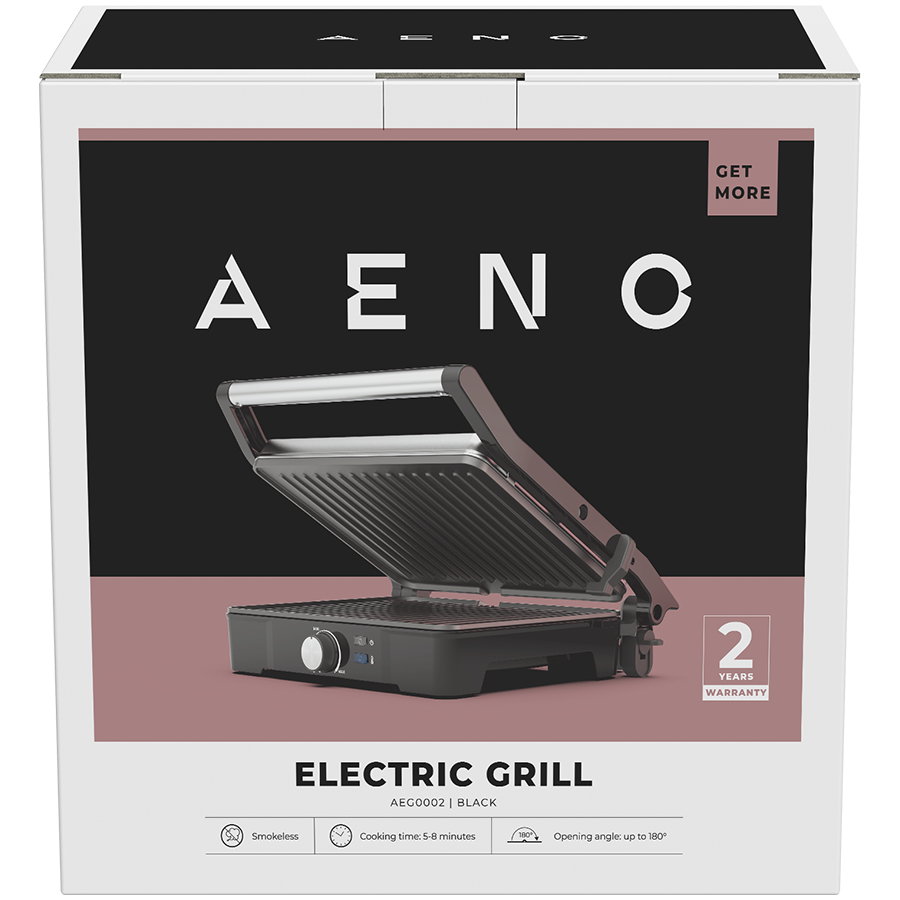 AENO Electric Grill EG2: 2000W, Temperature regulation, Max opening angle -180°, Plate size 290*234mm