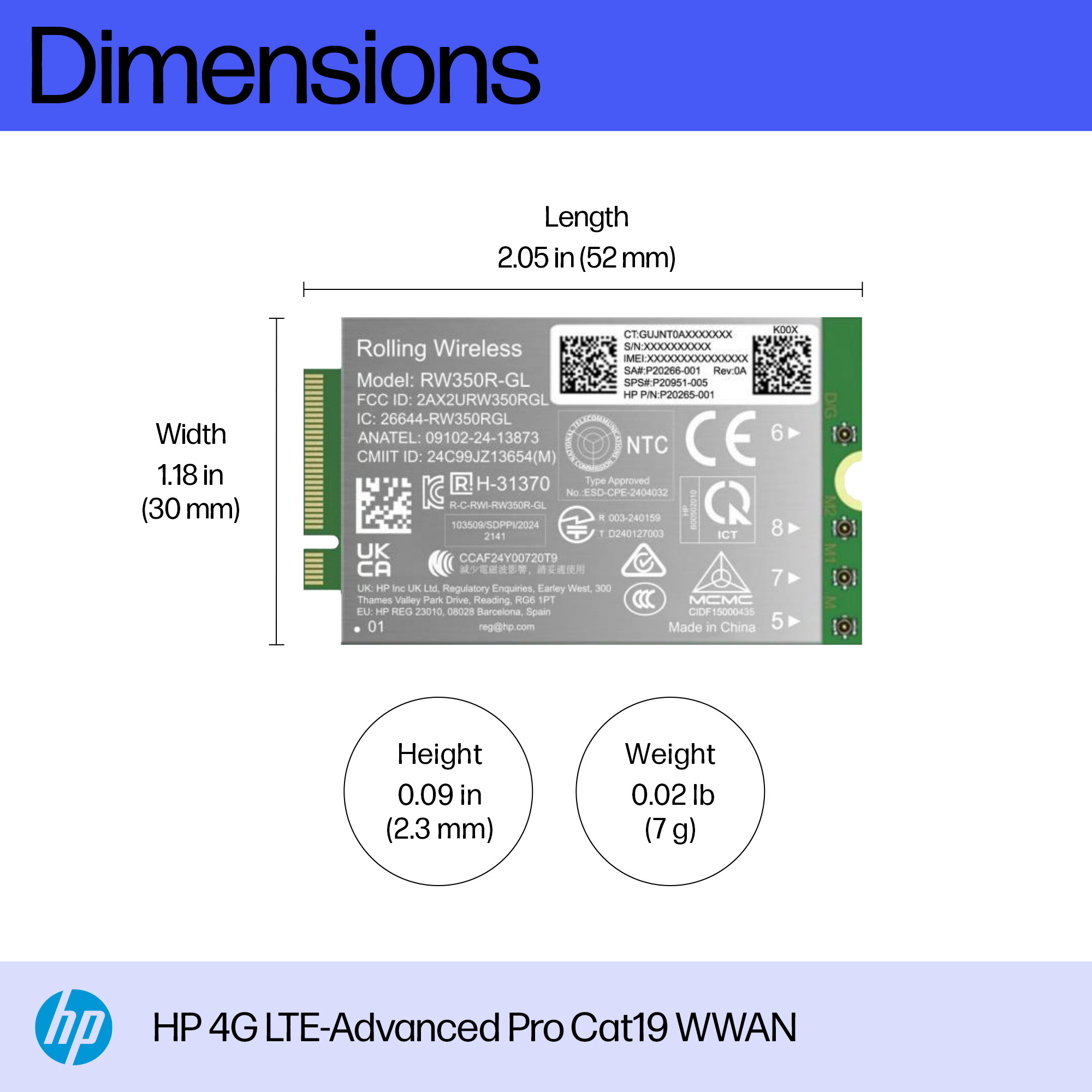 HP 4G LTE Modem m.2 WWAN Cat 19 Mobile Broadband Cellular (compatible with WWAN-ready EliteBook 8 X - G1i G1a - 13 14 16, Flip, ZBook 8 X Fury - G1i G1a - 14 16 18)