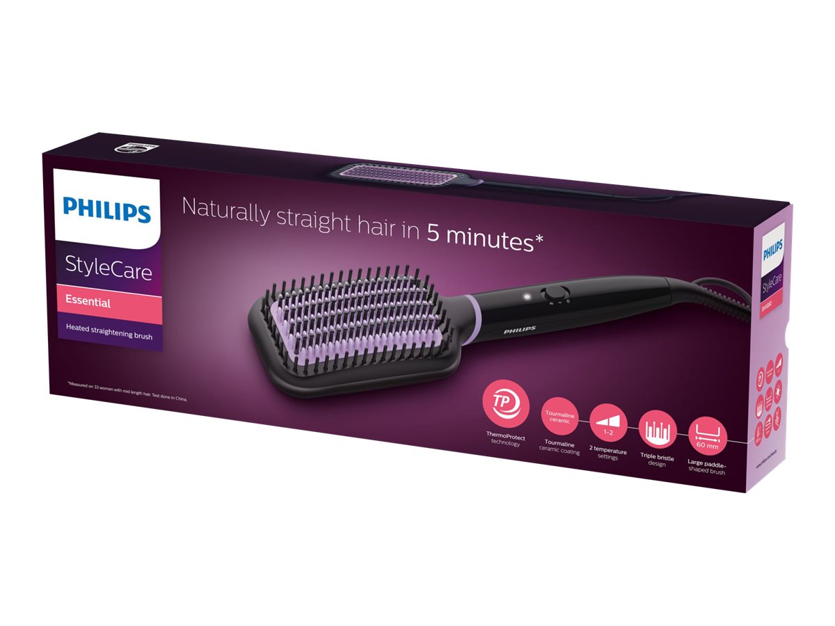 Philips | StyleCare Essential Heated straightening brush | BHH880/00 | Warranty 24 month(s) | Ceramic heating system | Temperature (min) 170 °C | Temperature (max) 200 °C | Number of heating levels 2 | Black