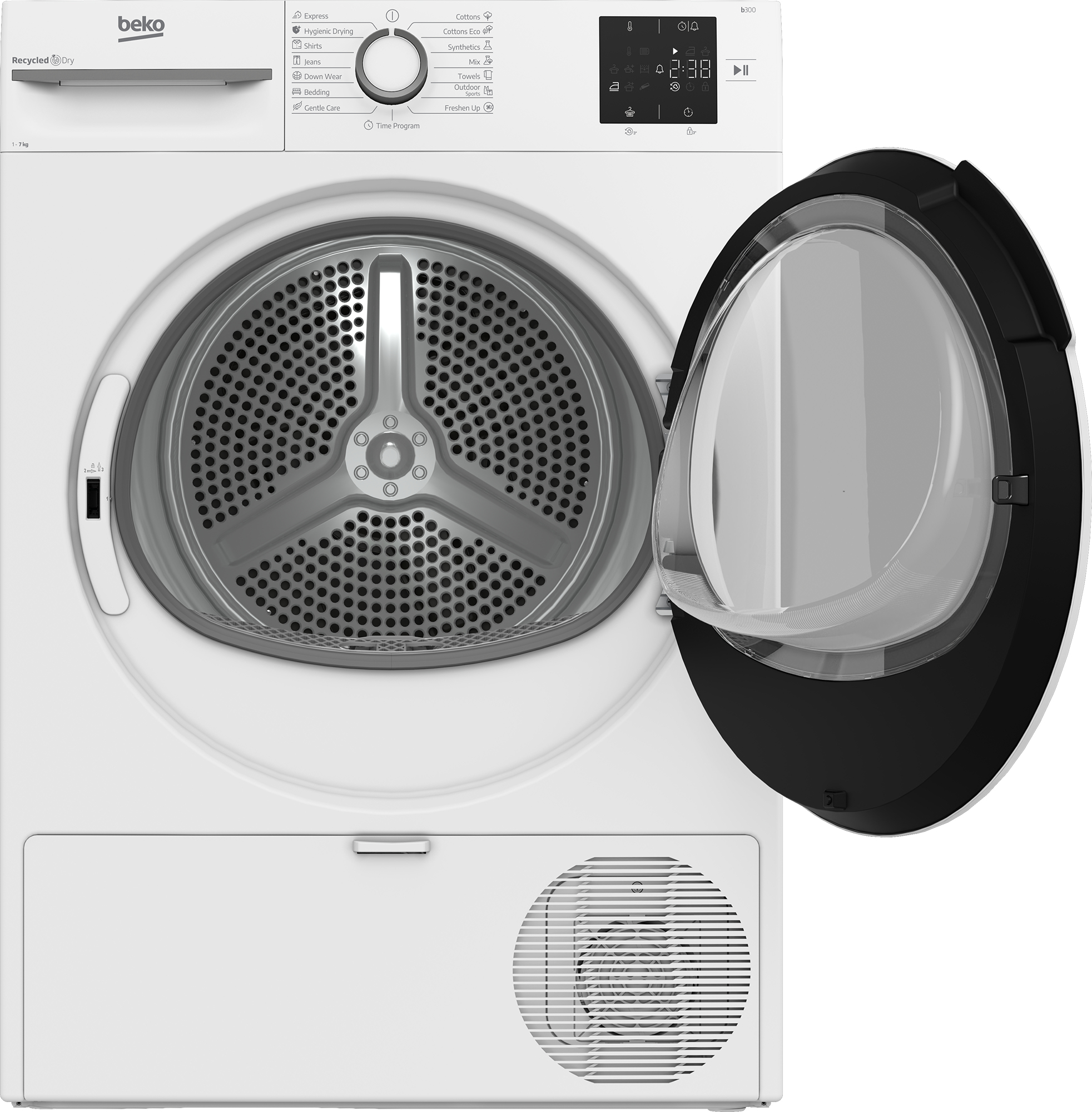• Freestanding Front-load 7 kg White • Heat pump • Number of drying programs: 15 • Built-in display • Anti-Crease function Delayed start timer Remaining time indication • Energy efficiency class: E