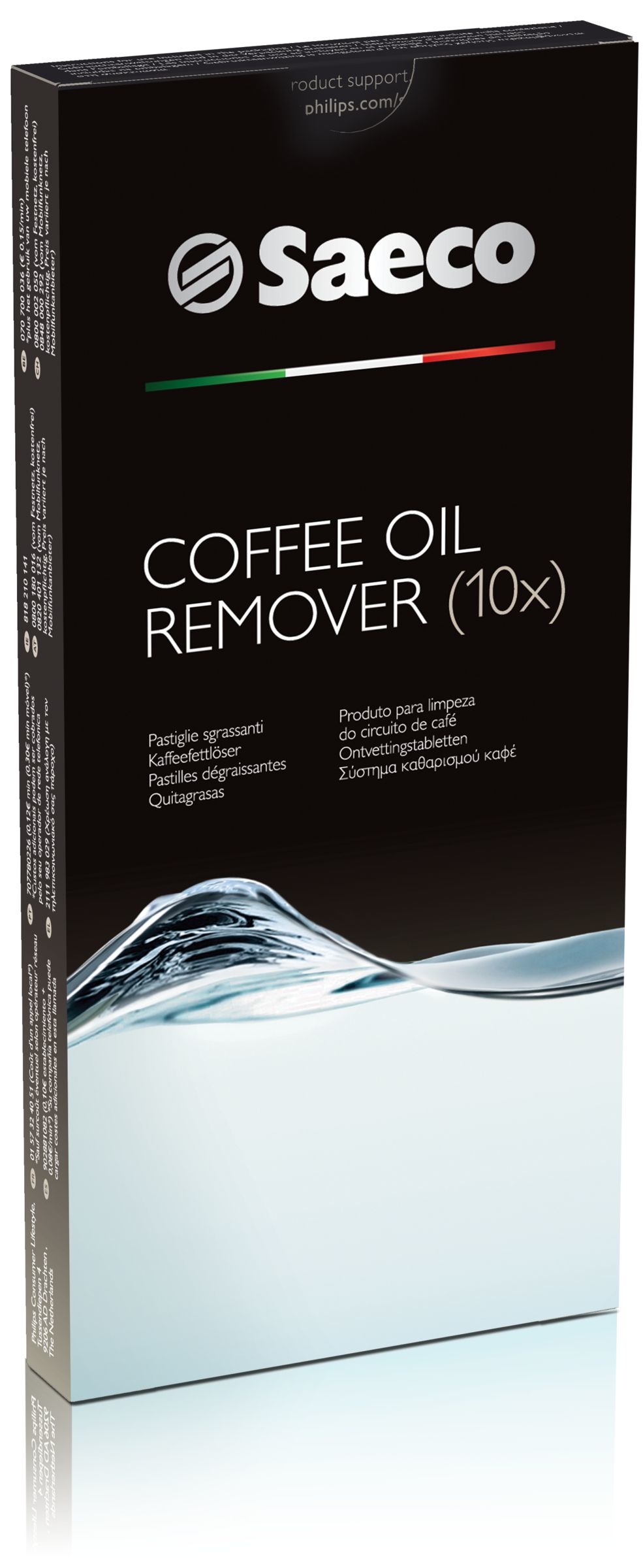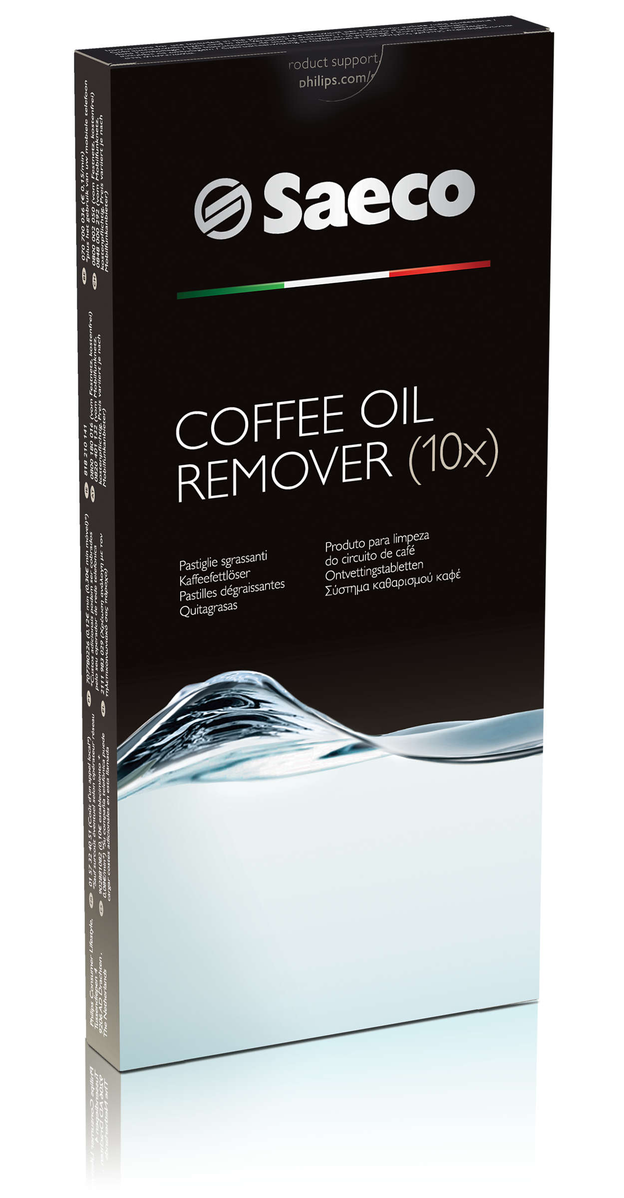 | Īpašās funkcijas | The Saeco Coffee Oil Remover Tablets remove coffee oil and grease perfectly inside thebrewing unit of your Espresso machines. |