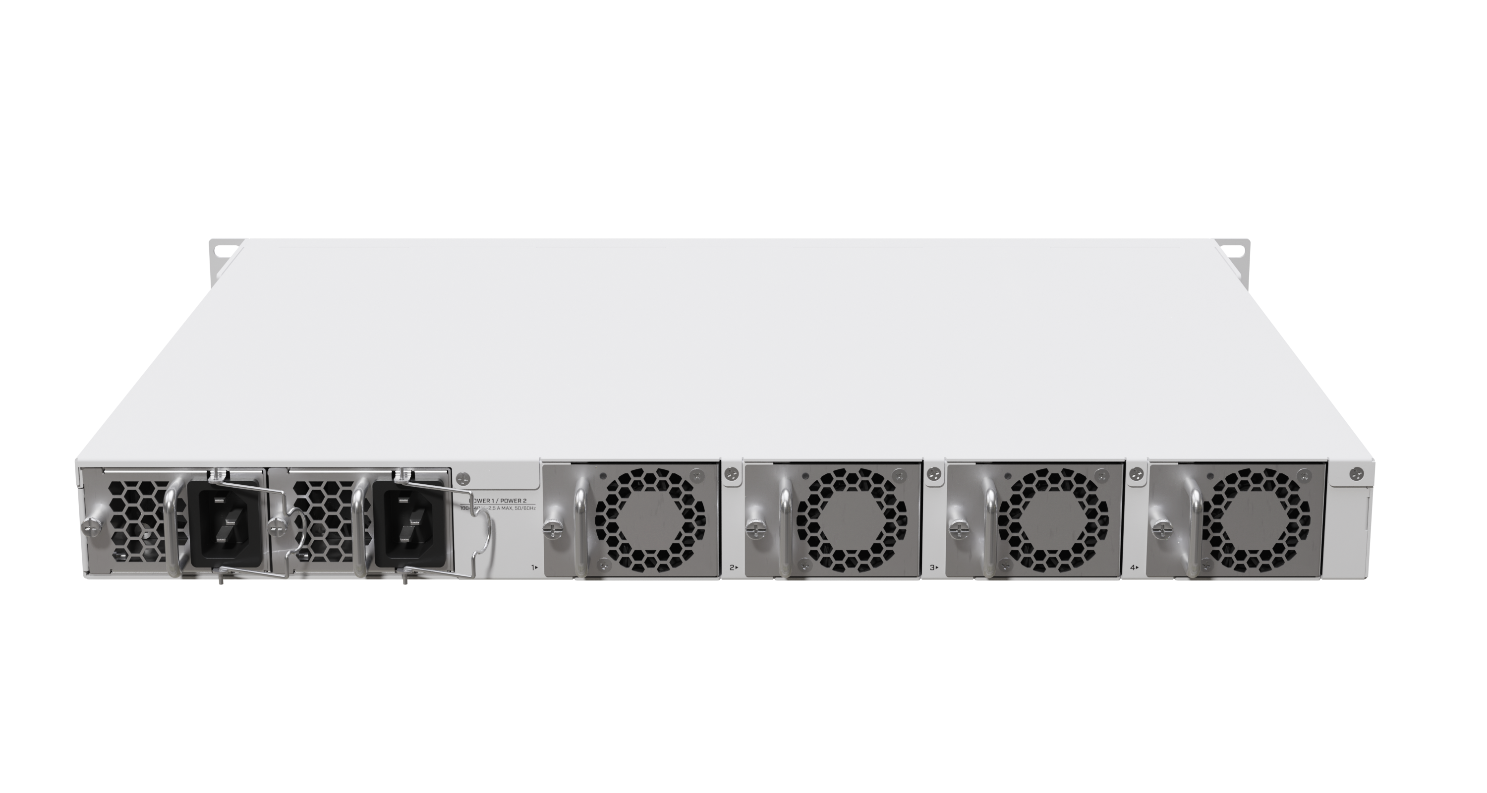 There are 2x QSFP28 cages for blazing-fast 100 Gigabit connectivity, 12x SFP28 cages for 25 Gigabit networking, and a Gigabit Ethernet port. The device comes with 16 GB of RAM, decent NAND storage, and two M.2 SATA slots for additional storage. There are four hot-swappable fans, as well as dual-redundant hot-swap power supplies. And these PSUs might look familiar if you have used our CCR1072 before: you can keep using your previous hot-swap power supplies and SFP modules.
