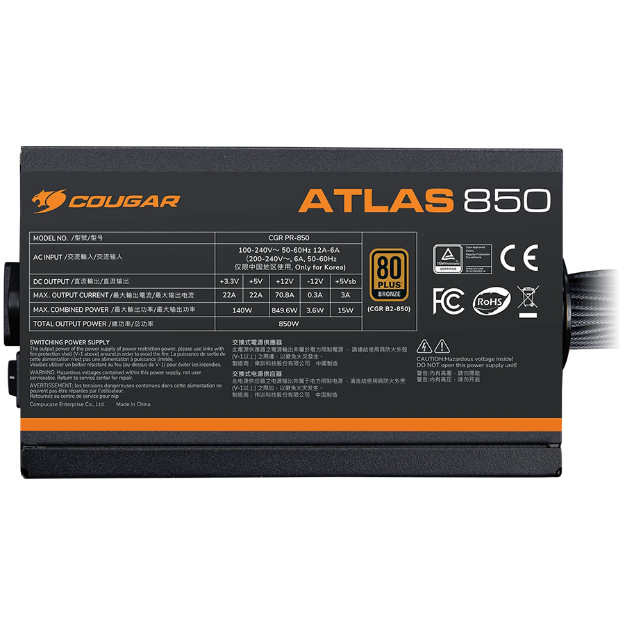 COUGAR ATLAS 750 PSU, 80 plus Bronze, 750W (ATX 3.1)