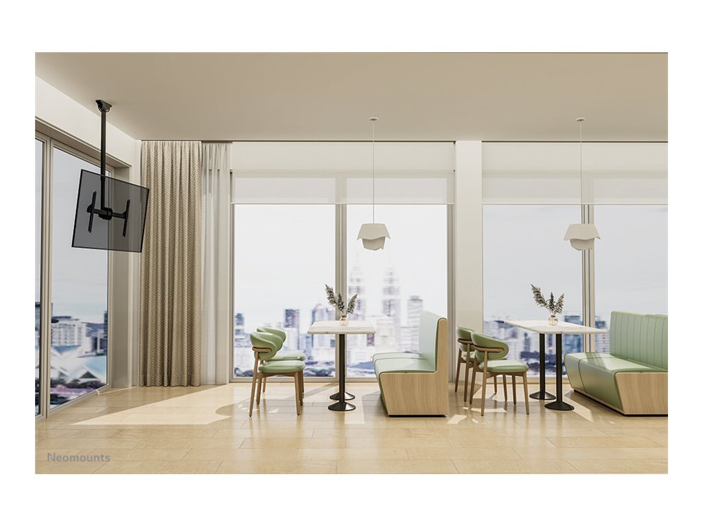 The Neomounts CL35-440BL16L is a full motion ceiling mount for flat screens up to 70". The unique tilt (25°) and swivel (360°) technology allows the mount to change to the optimal viewing angle. Level adjustment is available for the perfect installation.