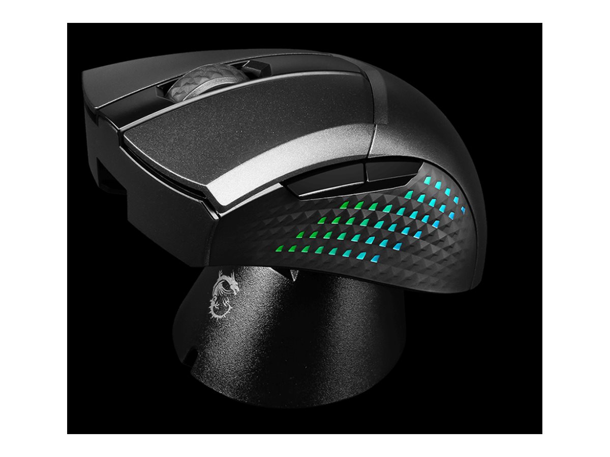 Supports two advanced charging solutions, MSI SNAP CHARGING and the MSI charging dock. MSI Diamond LightGrips features an anti-slip surface that allows gamers to hold the mouse firmly in hand, with fully customizable RGB illumination. Battery life Up to 150 hours (without the RGB lighting)