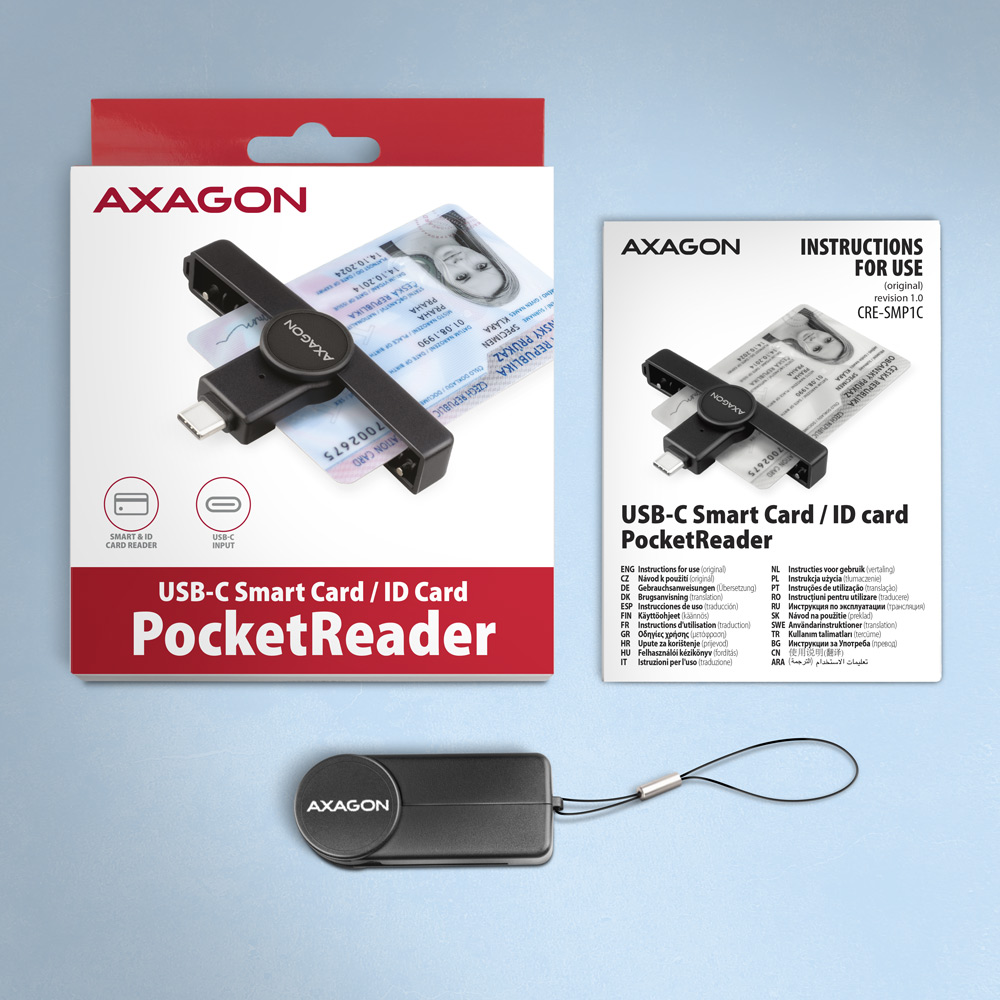 AXAGON Foldable pocket USB-C contact Smart/ID card reader | CRE-SMPC