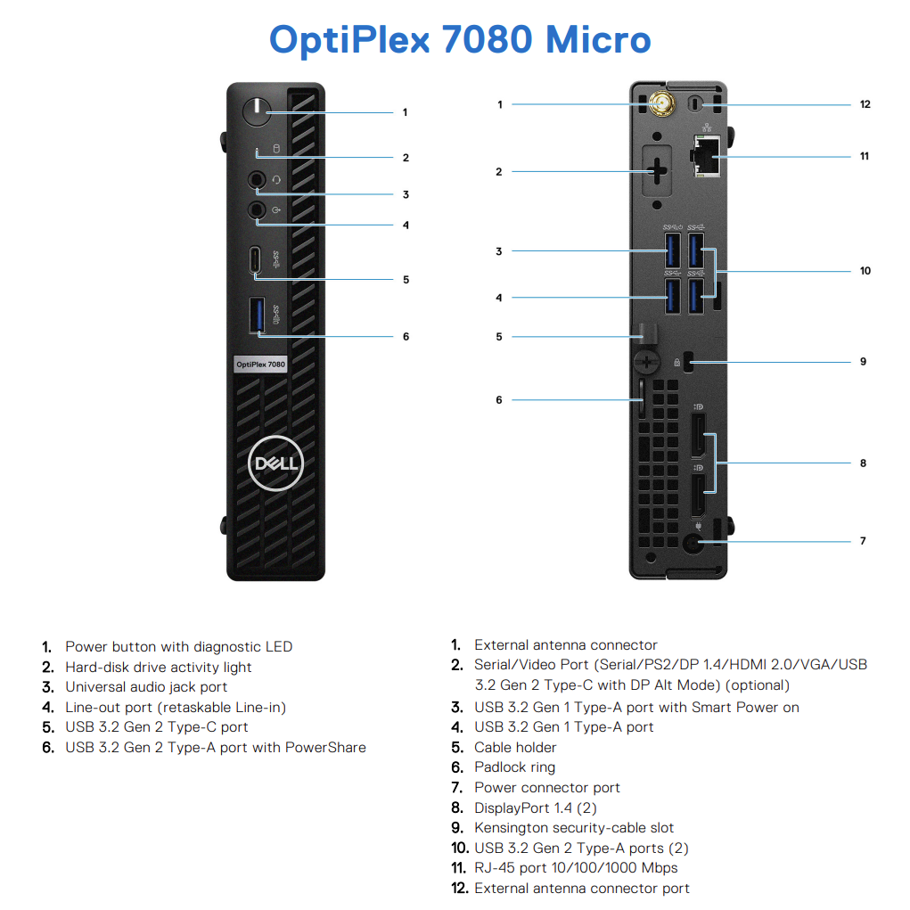 DELL Renewed Grade A | OptiPlex 7080 Micro | Intel Core i5 | i5‑10500T | 16 GB | SSD | 256 GB | Intel UHD Graphics 630 | Windows 11 Pro
