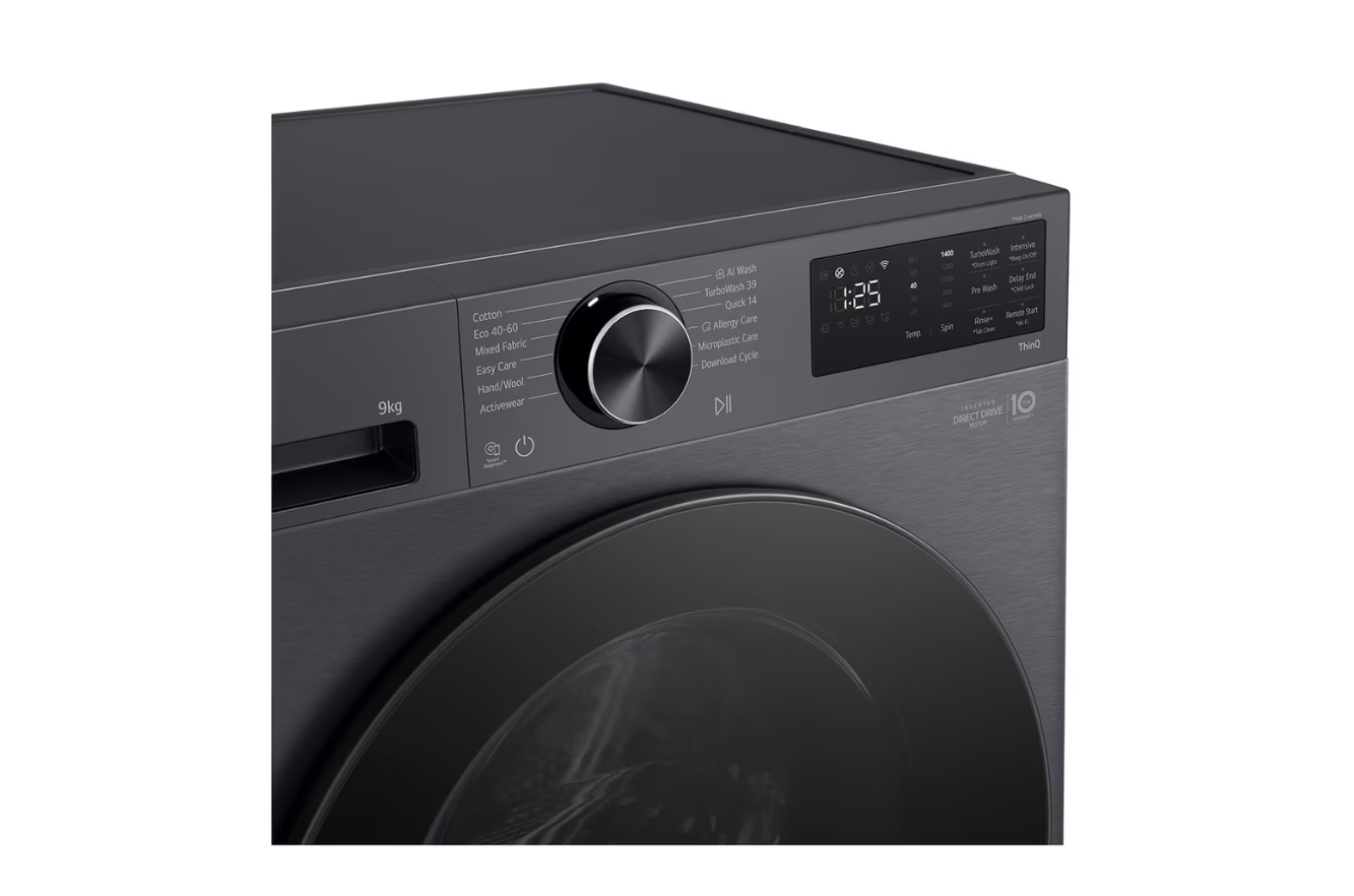 The AI Wash cycle uses the best motion and stroke depending on the fabric for optimal care; LG AI Direct Drive™ detects load and fabric characteristics to offer 18% more fabric care; LG\\'s Steam™ technology uses powerful sanitising steam to reduce allergens by up to 99.99%; LG ThinQ™ Wi-Fi models allow simple control, monitoring and even download of new cycles