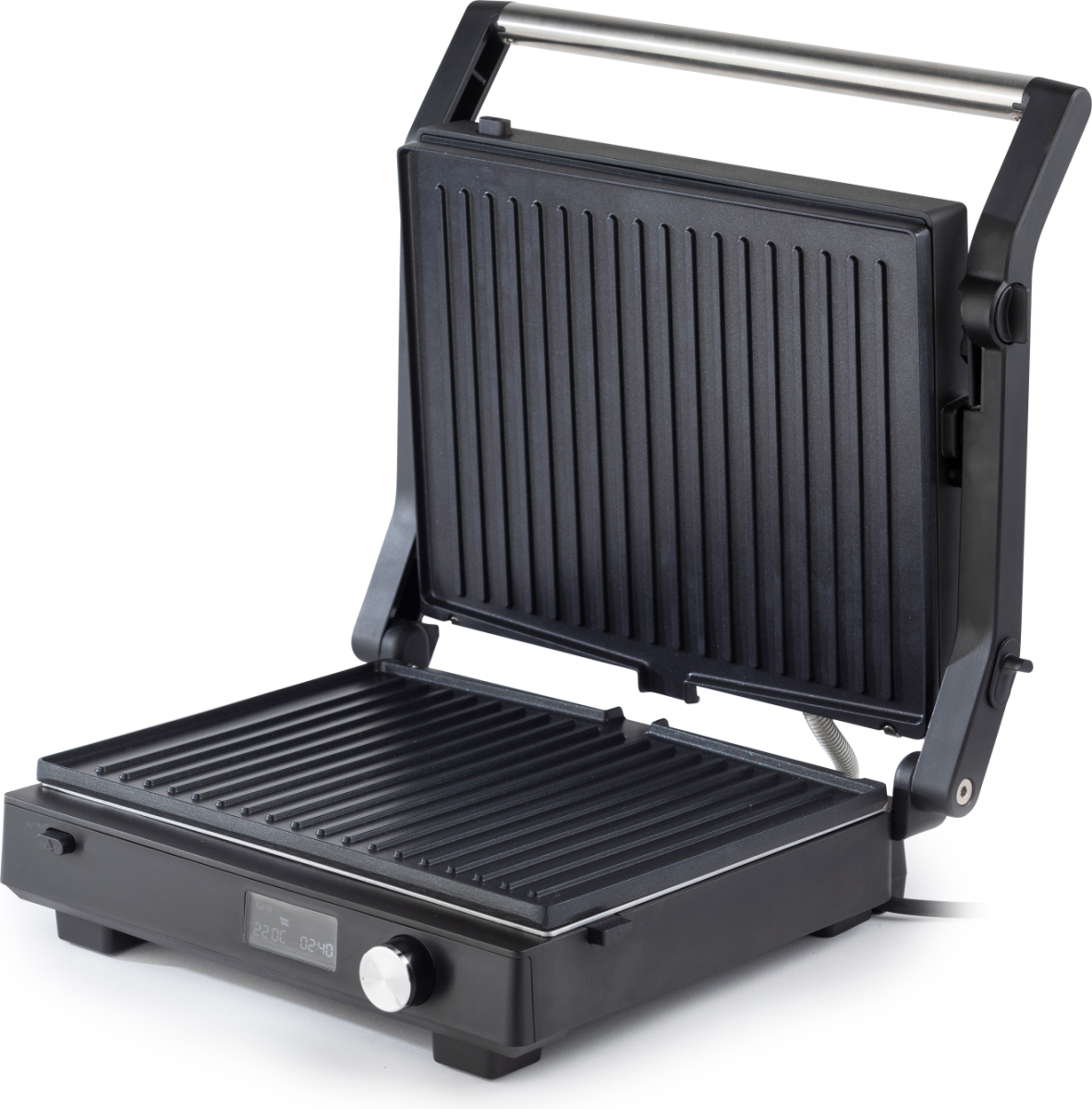 180° Open Grilling; Independent cook plate control; One knob control and elegant LED display; Grease drainage
