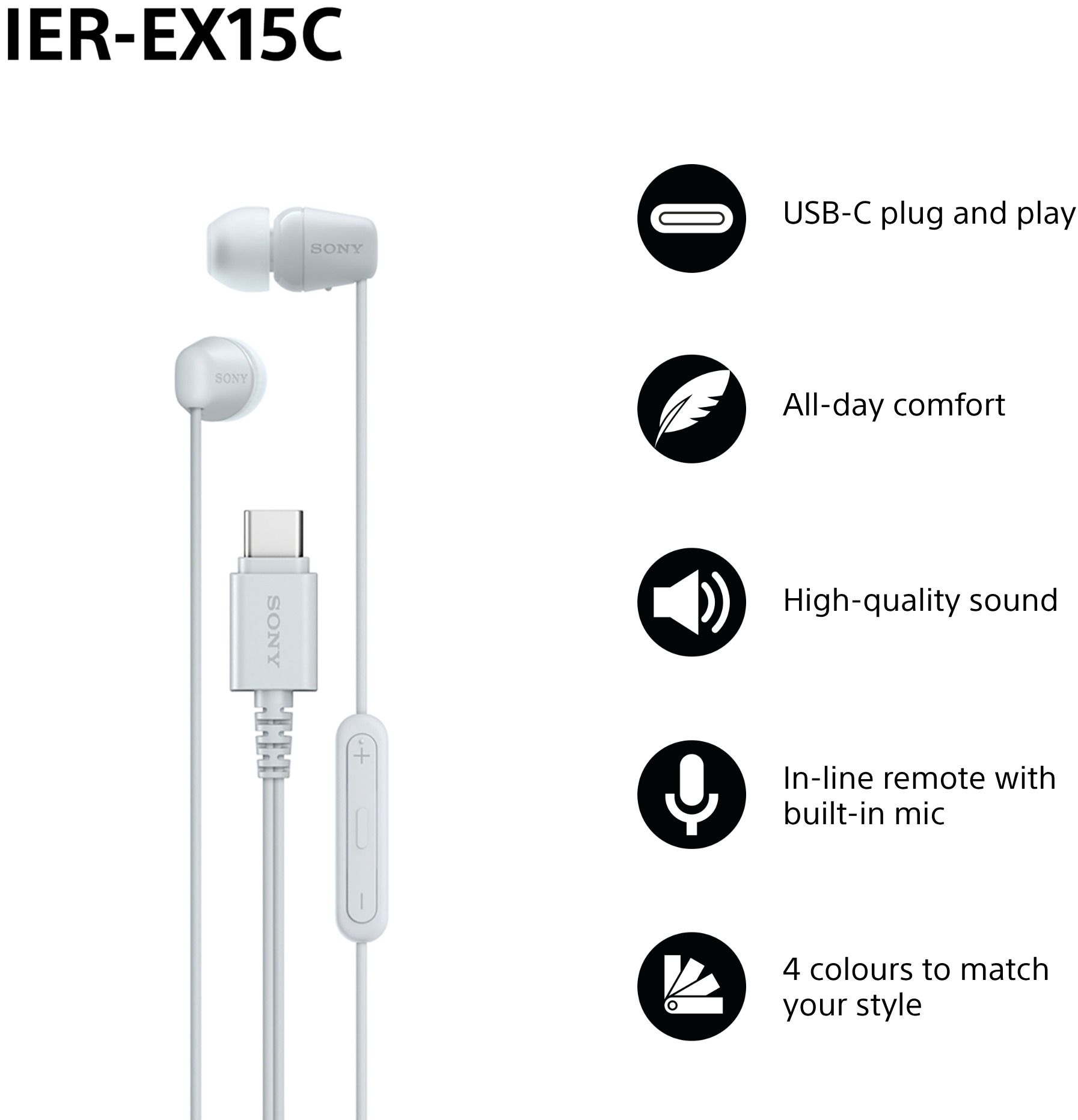 Sony Earbuds | IER‑EX15C | Wired | In-ear | Microphone | White