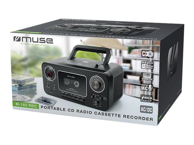 Connections Aux in jack (3.5mm); FM stereo/MW Analog tuner; Single cassette recorder; Records from CD and radio; FM swivel rod antenna