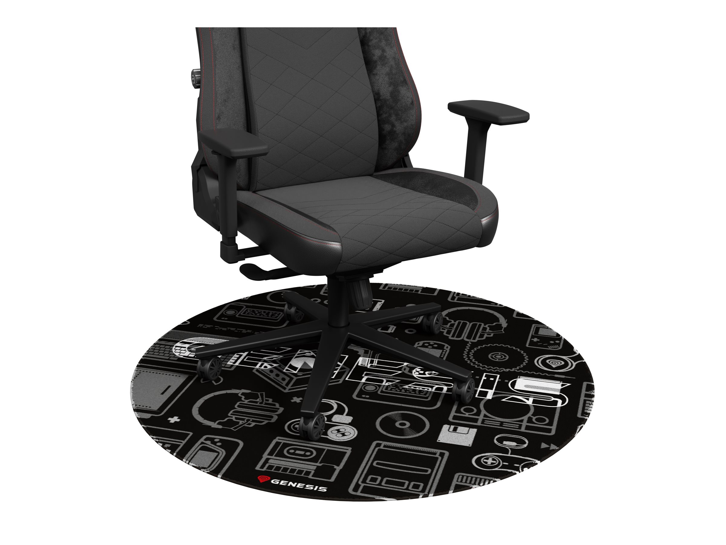 Round floor mat used under a gaming or office chair. It protects the floor from scratches. The surface of the mat allows the castors of the chair to slide smoothly. The non-slip bottom provides the perfect adhesion to the floor. The pad is covered with a unique colorful artwork.