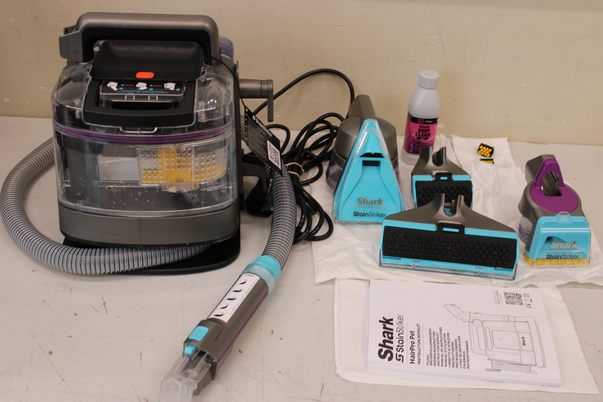 SALE OUT. Shark StainStriker HairPro Deep cleaner PX250EUT | Shark USED, DIRTY, MISSING 1 UNIT LIQVID BOTTLE