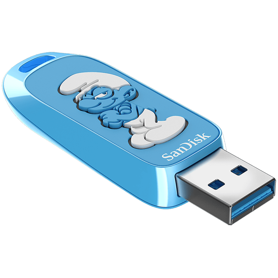 Great Smurfness! Store, share and showcase your Smurfy style with three new, limited-edition SanDisk Smurfs™ USB Flash Drives. Whether you’re a Brainy Smurf, a Smurfette, or a Papa Smurf, there’s a drive for the Smurf inside you. These Smurfs-themed drives include a redemption code for The Smurfs: Mission Vileaf video game with purchase, limitations apply. Expand your storage up to 256GB1 so you can save your favorite videos, photos, games and more. And with read speeds up to 130MB/s, you can transfer large files quickly. Smurf longer, Smurf faster, and Smurf more with SanDisk Smurfs™ USB Flash Drives!