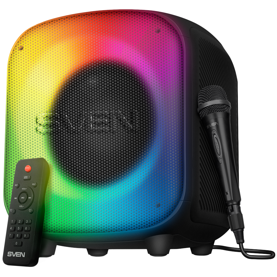 Speaker SVEN PS-555, black, power output 65 W (RMS), TWS, Bluetooth, USB, microSD, RC, lithium battery