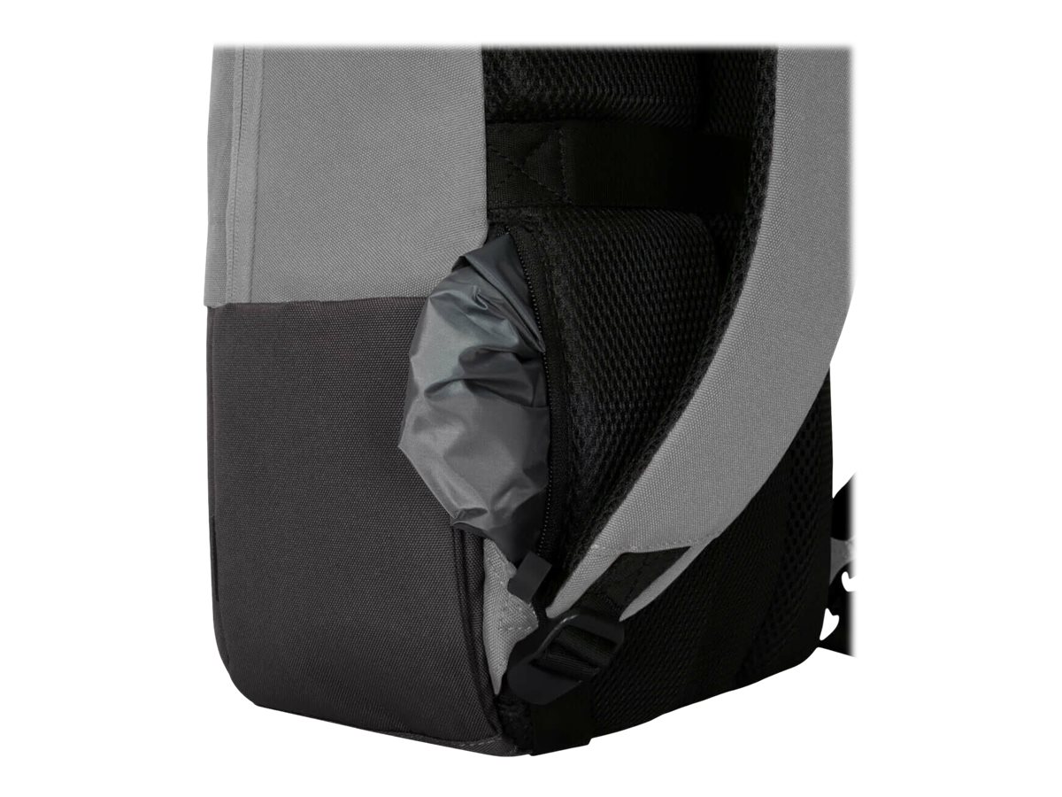 Created to fit 15.6? laptops, the functional and eco-friendly Targus® Sagano? EcoSmart® Commuter Backpack features a padded laptop compartment and a large, zippered front pocket for easy access items. Inside you?ll find a handy workstation to keep your pen, ID, and keys organised, while the outside has two convenient side pockets for your reusable water bottles, and a zippered back stash pocket to keep your phone or wallet secure. Whether you?re headed to the office or simply packing up your gear for the nearest coffee shop with an outdoor patio, this bag is consciously designed to protect your essentials while protecting the environment. Clouds rolling in? No problem. This bag has a hidden pocket with a built-in rain cover.