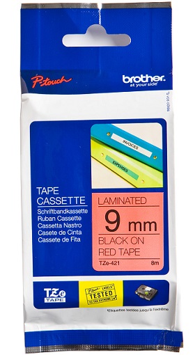 Brother | TZe-421 Laminated Tape | Black on Red | TZe | 8 m | 9 cmŠim produktam ir 12 mēnešu garantija.