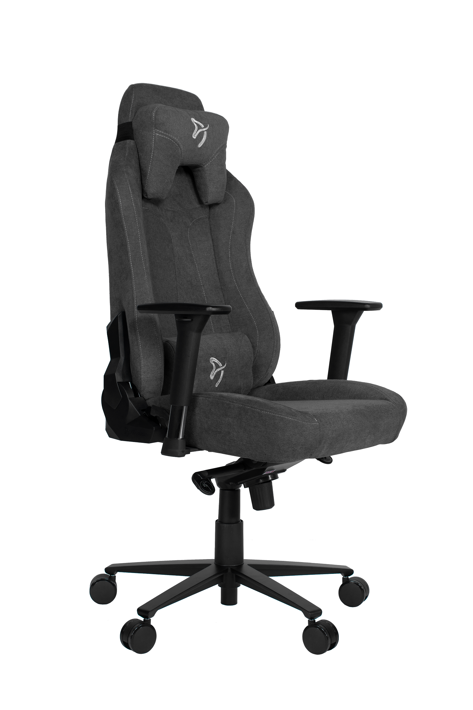 Soft yet durable furniture fabric. Soft neck & lumbar support pillows. Adjustable height gas spring that supports up to 145kg/ 320 lbs. Large and spacious seat and backrest. Sturdy metal frame and aluminium wheel base. Pro locking tilt mechanism & 3D armrests. Large premium casters.