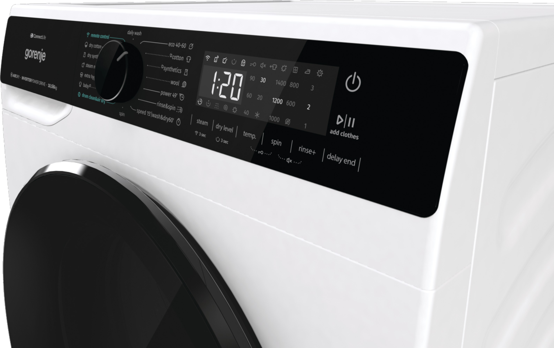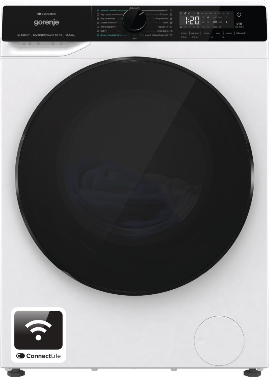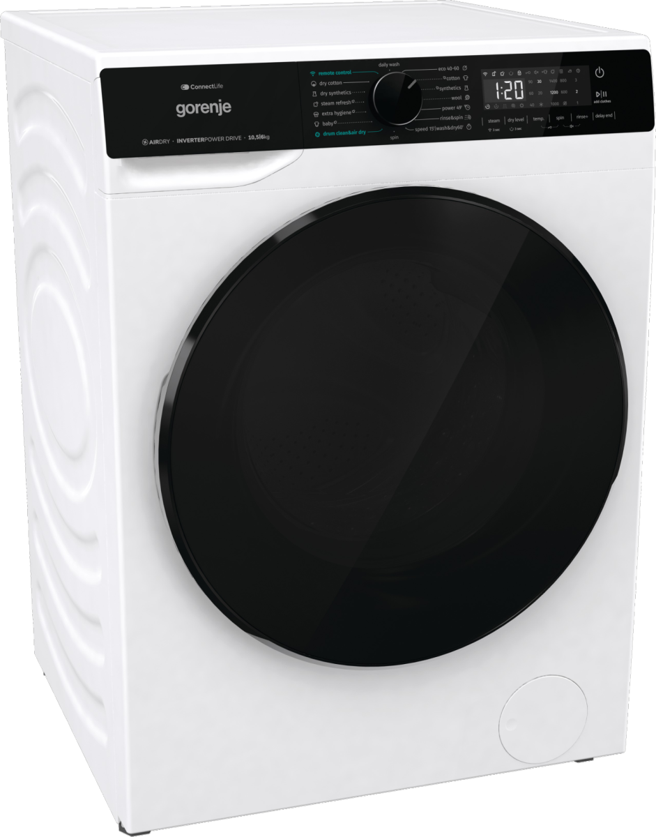 Gorenje Washing Machine with Dryer | WD2PA1X64ADW | Energy efficiency class A/D | Front loading | Washing capacity 10.5 kg | 1400 RPM | Depth 59 cm | Width 60 cm | Display | LED | Drying system | Drying capacity 6 kg | Steam function | Wi-Fi | White