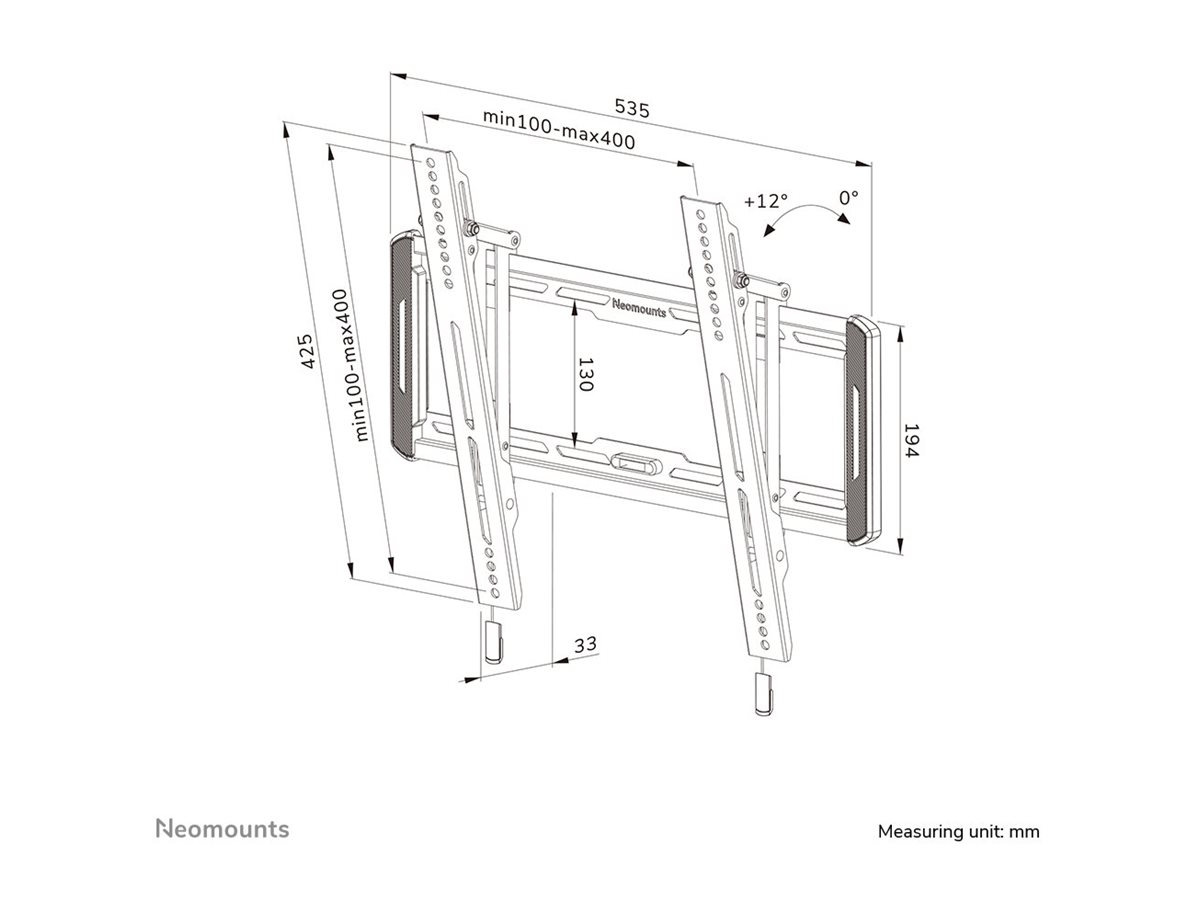 The LEVEL-550 wall mount has a depth of 3,3 cm and is suitable for screens that meet VESA hole pattern 100x100 to 400x400 mm.