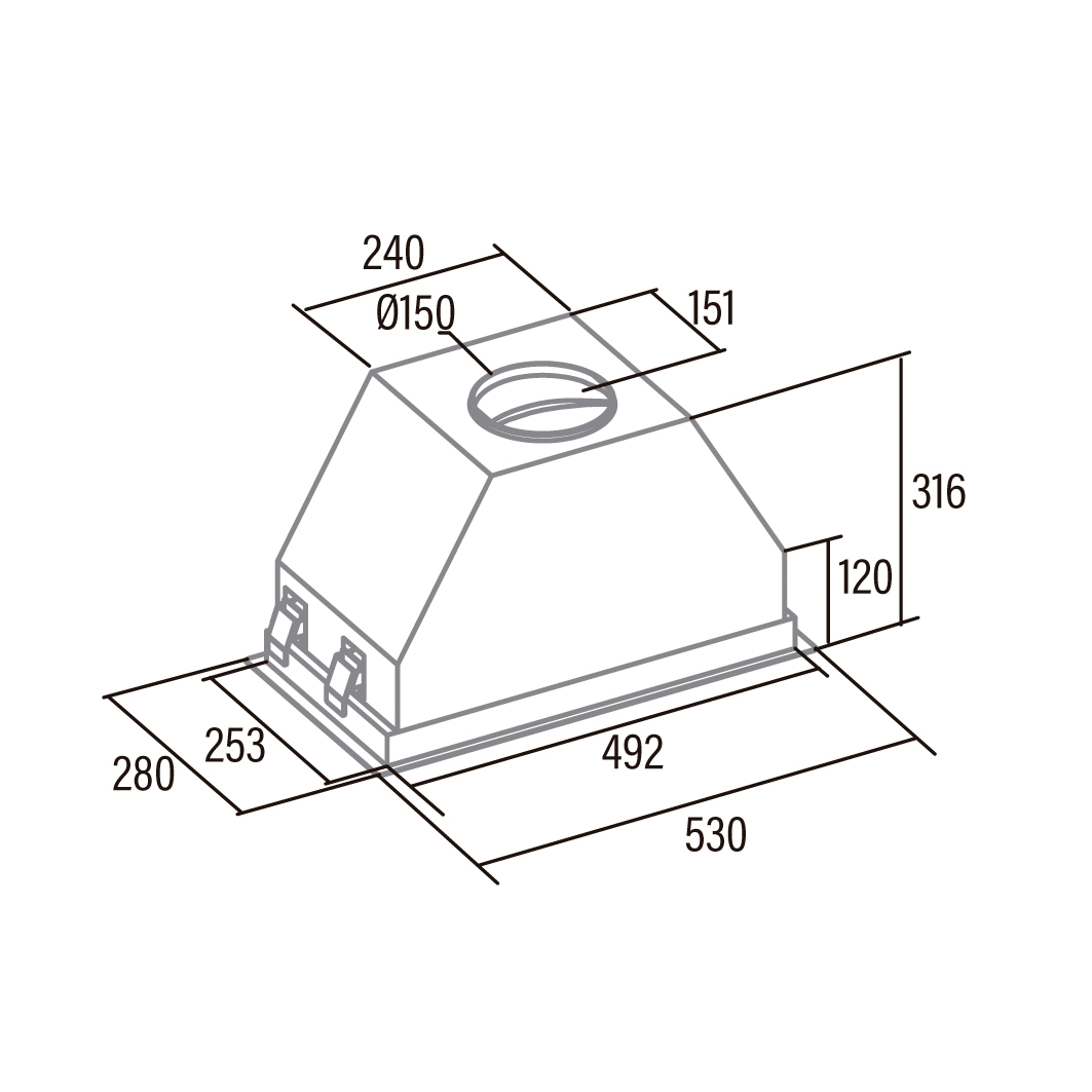 4 extraction levels, 3 + 1 TURBO Max. Pressure: 470 Pa; 150/125 mm outlet diameter