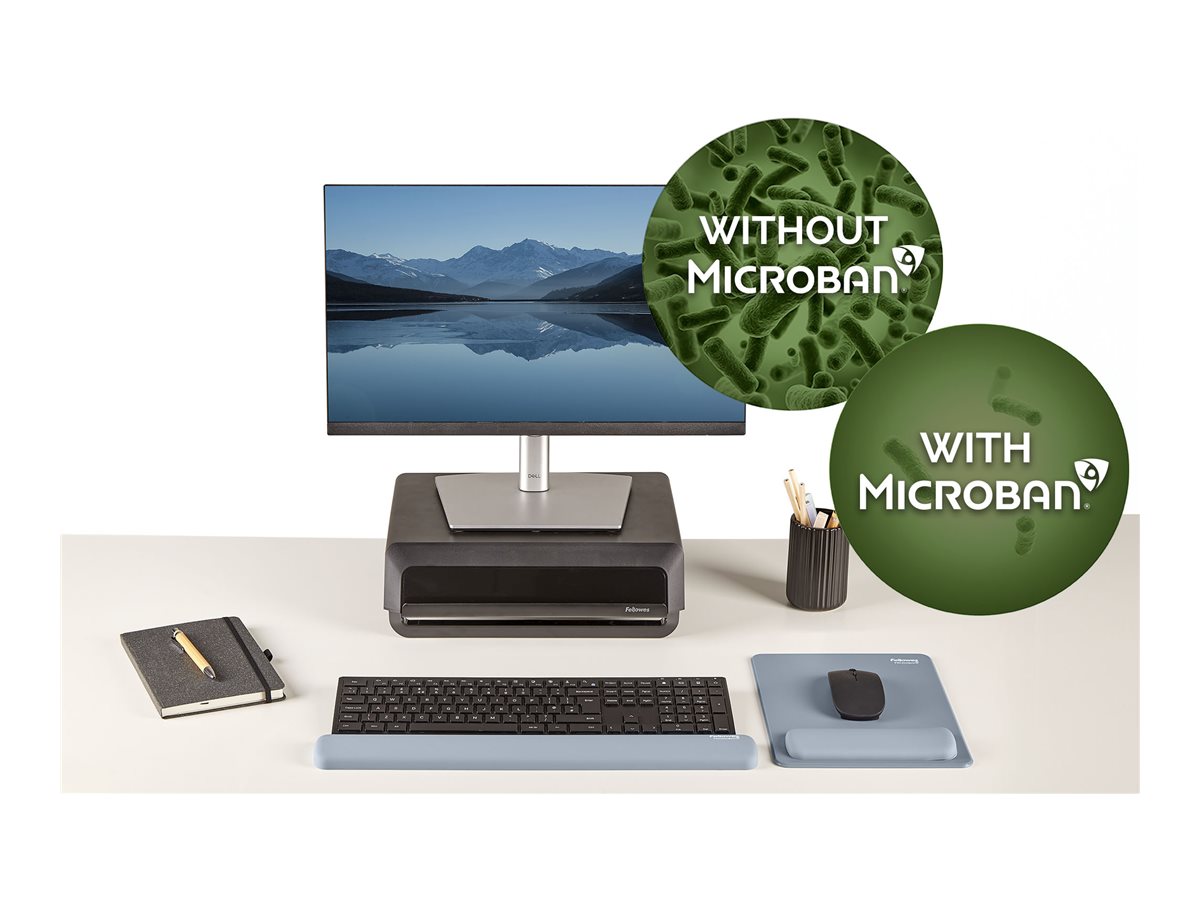 Patent pending HEX Cushion Technology™ combines uniform support with exceptional comfort whilst typing; The soft touch, anti-dust coated wrist rest provides a premium finish and smooth typing experience; Built in Microban® protection helps prevent the growth of bacteria and works 24/7 for an added level of product protection; 100% recyclable with the Fellowes takeback scheme.