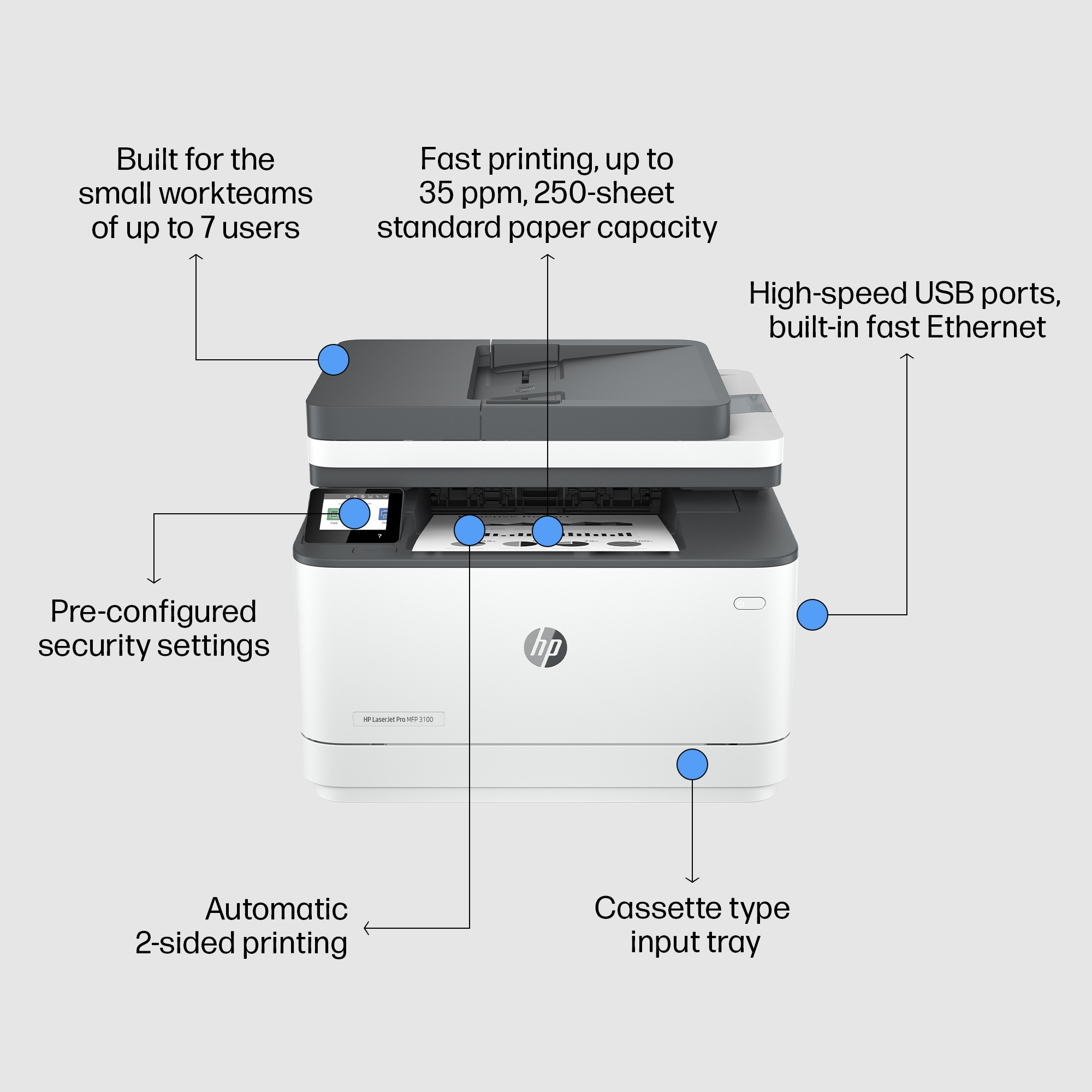 • Wireless; Print from phone or tablet; Two-sided printing • Print • Black (normal, A4): Up to 33 ppm; Black (Duplex, A4): Up to 20 ipm • Up to 1200 x 1200 dpi