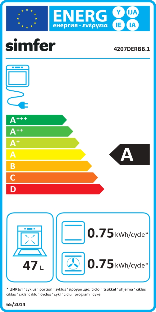 Simfer Oven | 4207DERBB.1 | 47 L | Multifunctional | Manual | Pop-up knobs | Height 59.5 cm | Width 45 cm | White