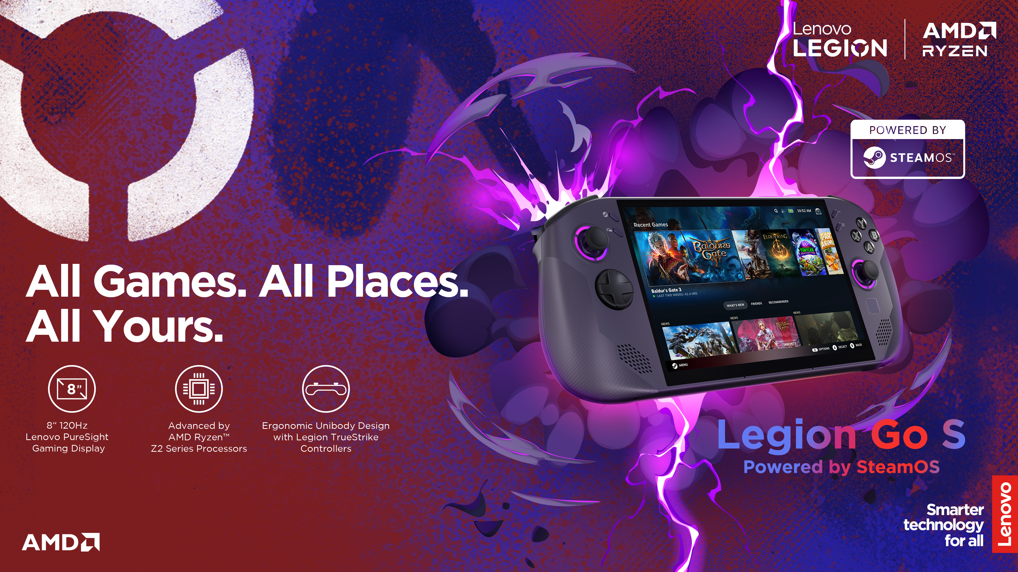 Lenovo Legion Go S 8ARP1 (Power adapter not included) | 8 \" | Touchscreen | AMD Ryzen Z2 Go | 32 GB | Solid-state drive capacity 1000 GB | AMD Radeon Graphics | Steam OS | Bluetooth version 5.3 | Warranty 24 month(s)