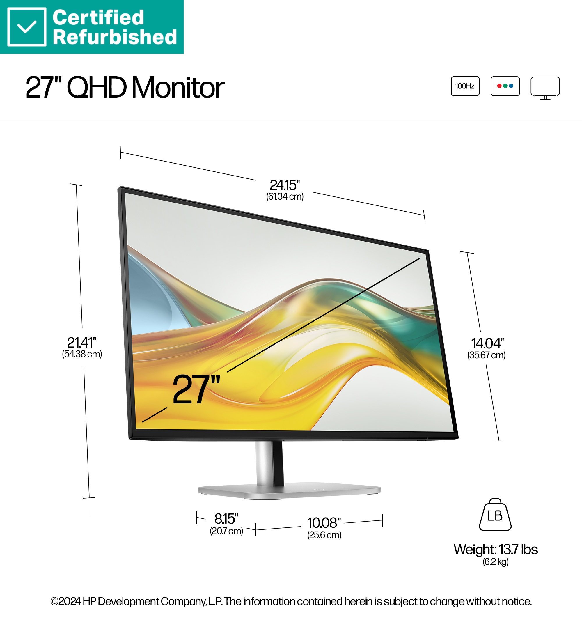 RENEW GOLD HP 527pq Series 5 Pro QHD Monitor - 27" 2560x1440 QHD 350-nit 100Hz AG, IPS, HDMI/DisplayPort, 4x USB-A, height adjustable/tilt/swivel/pivot, 1 years (replaces E27q G5)