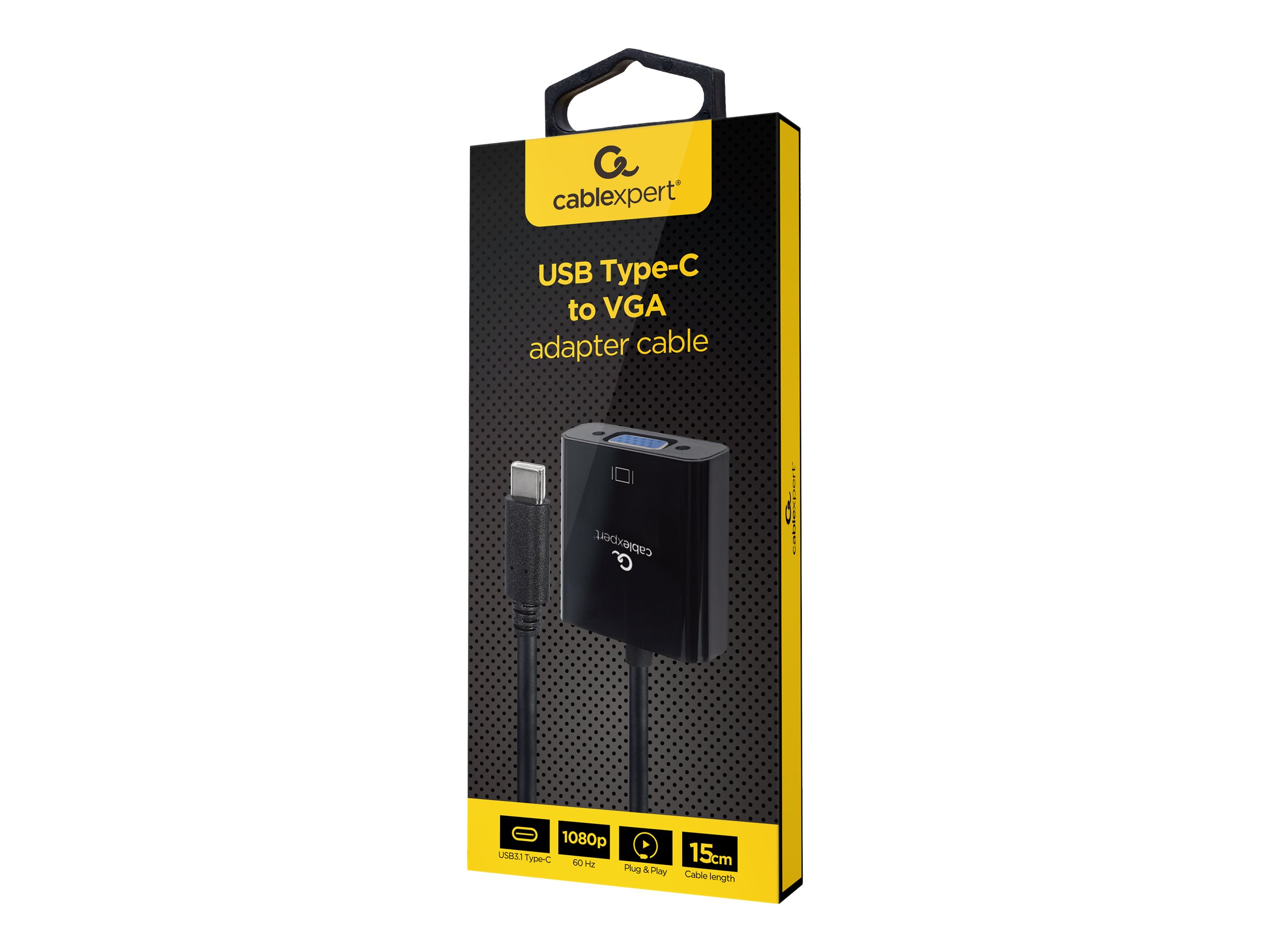 USB Type-C to VGA adapter cable, 15 cm, black