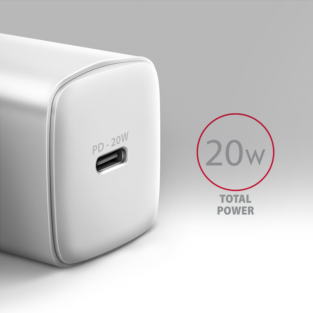 AXAGON Wallcharger 1x port USB-C, PD3.0 / PPS /QC4+/AFC/FCP/Apple, 20W | ACU-PD20W