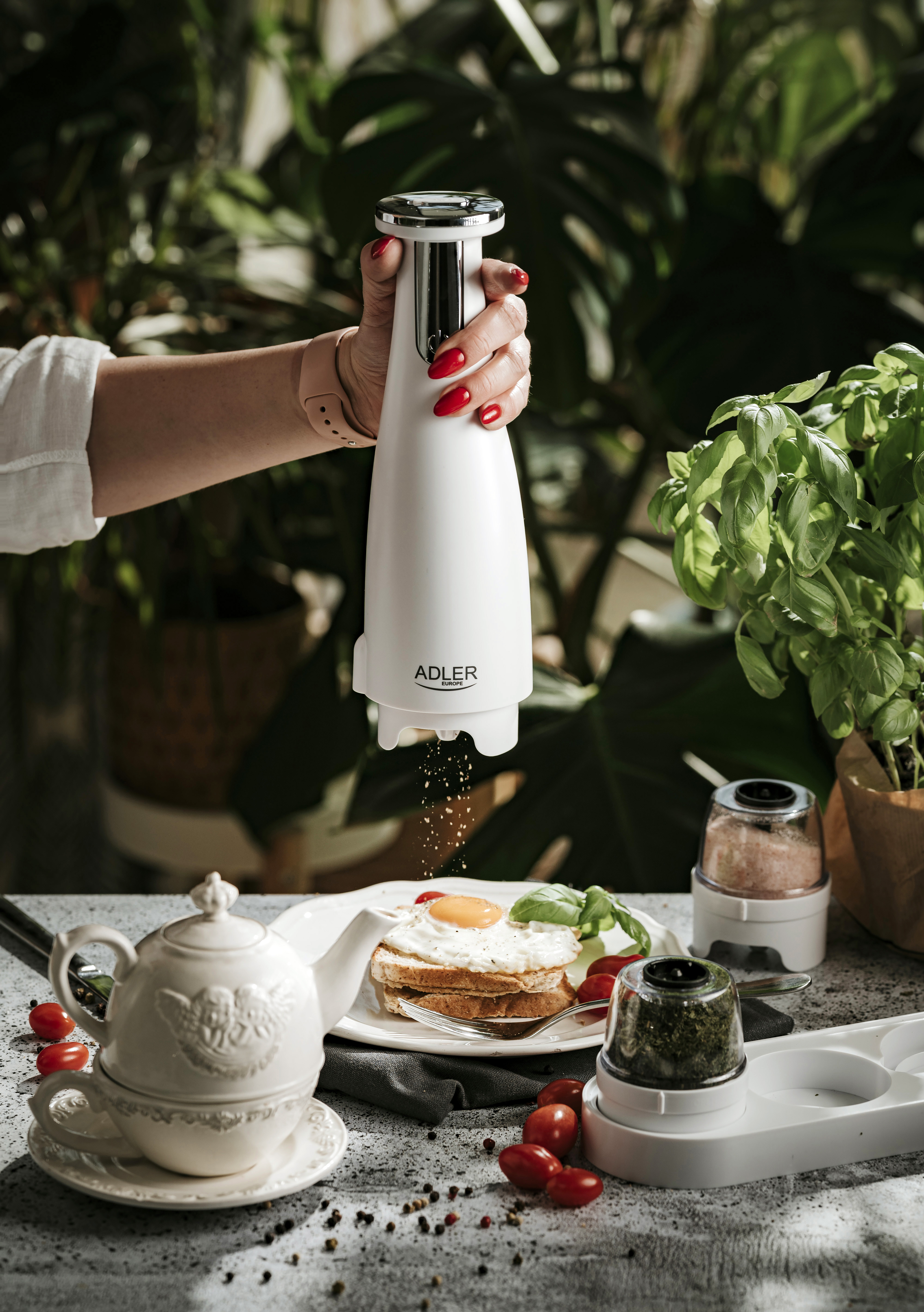 Mills with ceramic querns; Charging light; Auto power off after: 3 minutes; Fully charged for 120 minutes of continuous use; Charging time: 2.5 hours; Cable charging: USB-C-USB-A; Grinder capacity: 150ml; Included: base, 3 replaceable grinders, tray, USB charging cable