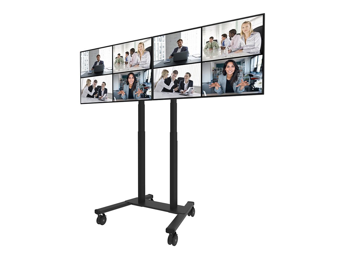 The Neomounts ADM-875BL2 is a dual screen adapter optional for the FL55-875BL1 mobile floor stand and WL55-875BL1 wall stand. The adapter allows the installation of 2 screens from 42" up to 65" with a maximum weight of 40 kg per screen. The height adjustable brackets ensure perfect alignments of the screens. It is possible to lock these brackets, using a padlock (not included). It is also possible to install a XXL display up to VESA 2000x600 mm and max 80 kg.