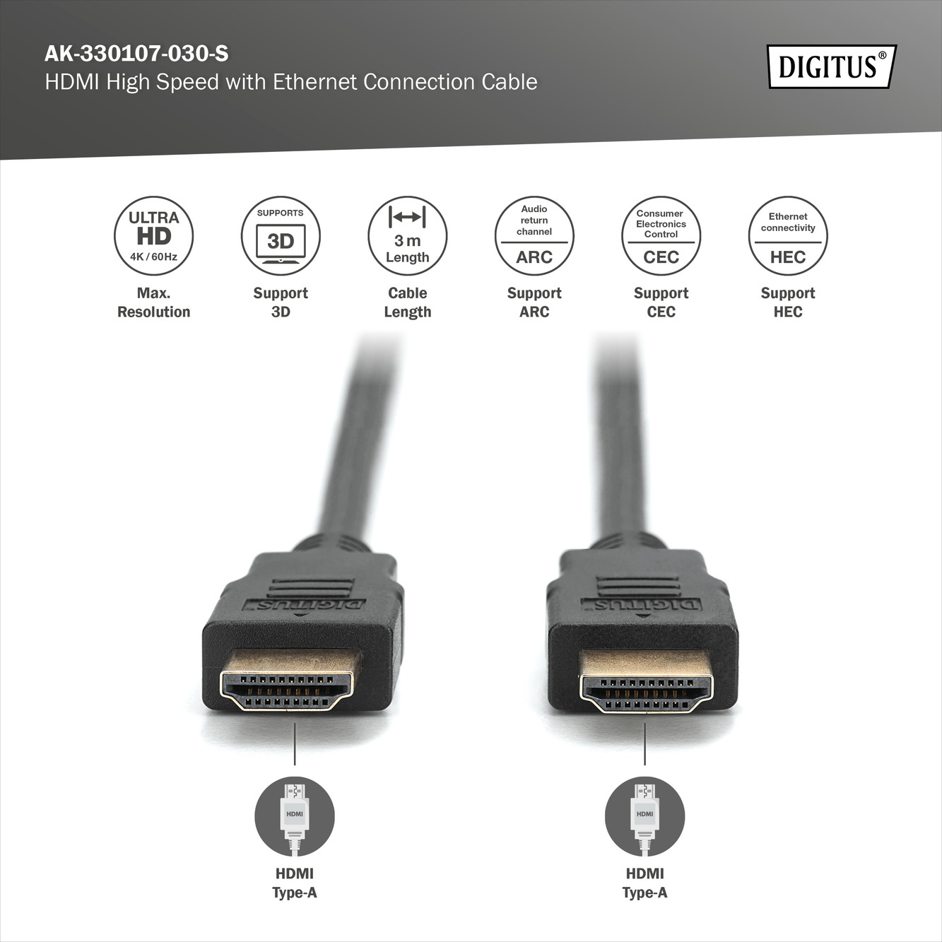 Digitus 4K HDMI 2.0 Connection Cable | HDMI to HDMI | 3 m