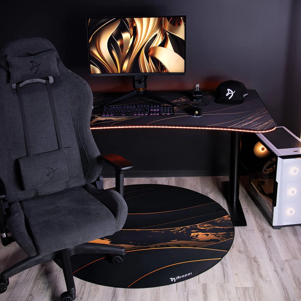 Microfiber material with stiched edges; Anti-slip rubber bottom to ensure it stays in place; Dampens the noise of chair movements; Protects your floor from scratches