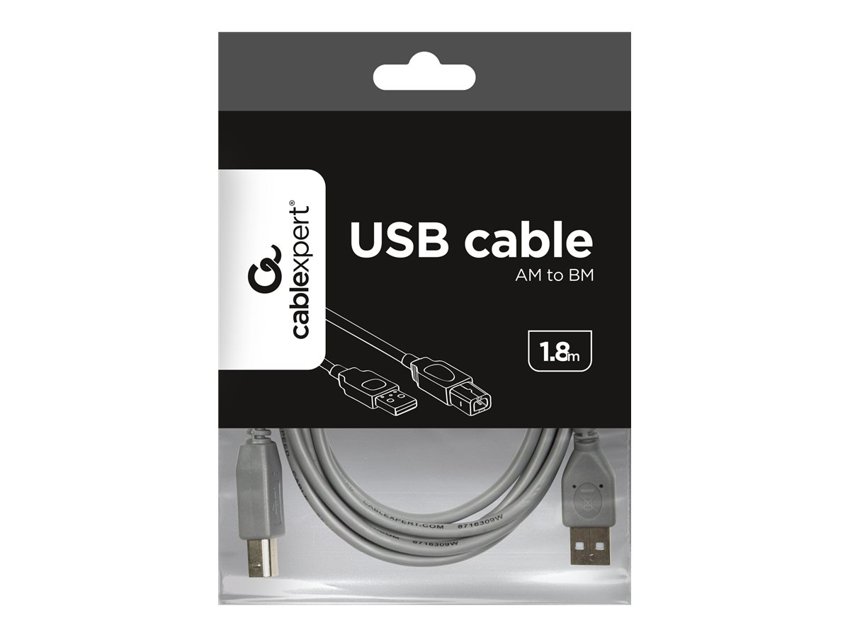 USB 2.0 A-plug B-plug 6ft cable, grey color
