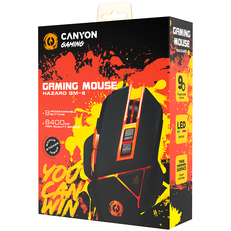 | Komerciālais nosaukums | CANYON mouse Hazard GM-6 LED Wired Black Orange |