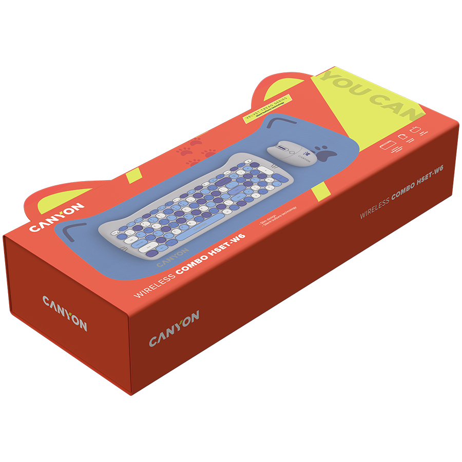 | Komerciālais nosaukums | CANYON HSET-W6 Keyboard+Mouse Kitty Edition AAA+РђРђ Wireless Blue |