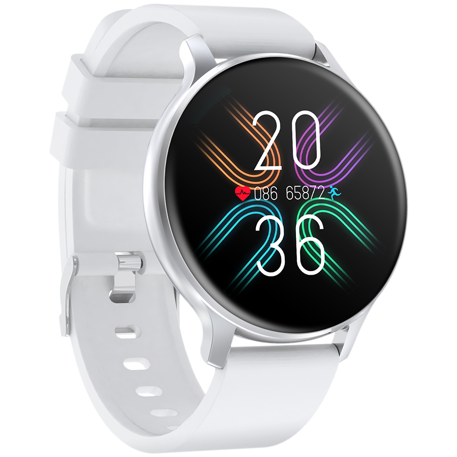 CANYON Badian SW-68, Smartwatch, Realtek 8762CK, 1.28''TFT 240x240px; RAM : 160KB, Lithium-ion polymer battery, 3.7V 190mAh Include, Silver Zinc alloy middle frame + plastic bottom case+ white Silicone strap + silver strap buckle, 44.9x 10.9mm, strap: 20x220mm, 50.64g