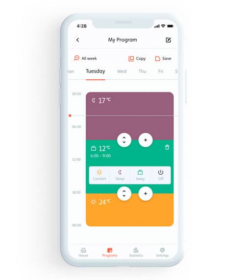| Kontroles Tips | Thermostat: wifi + app |