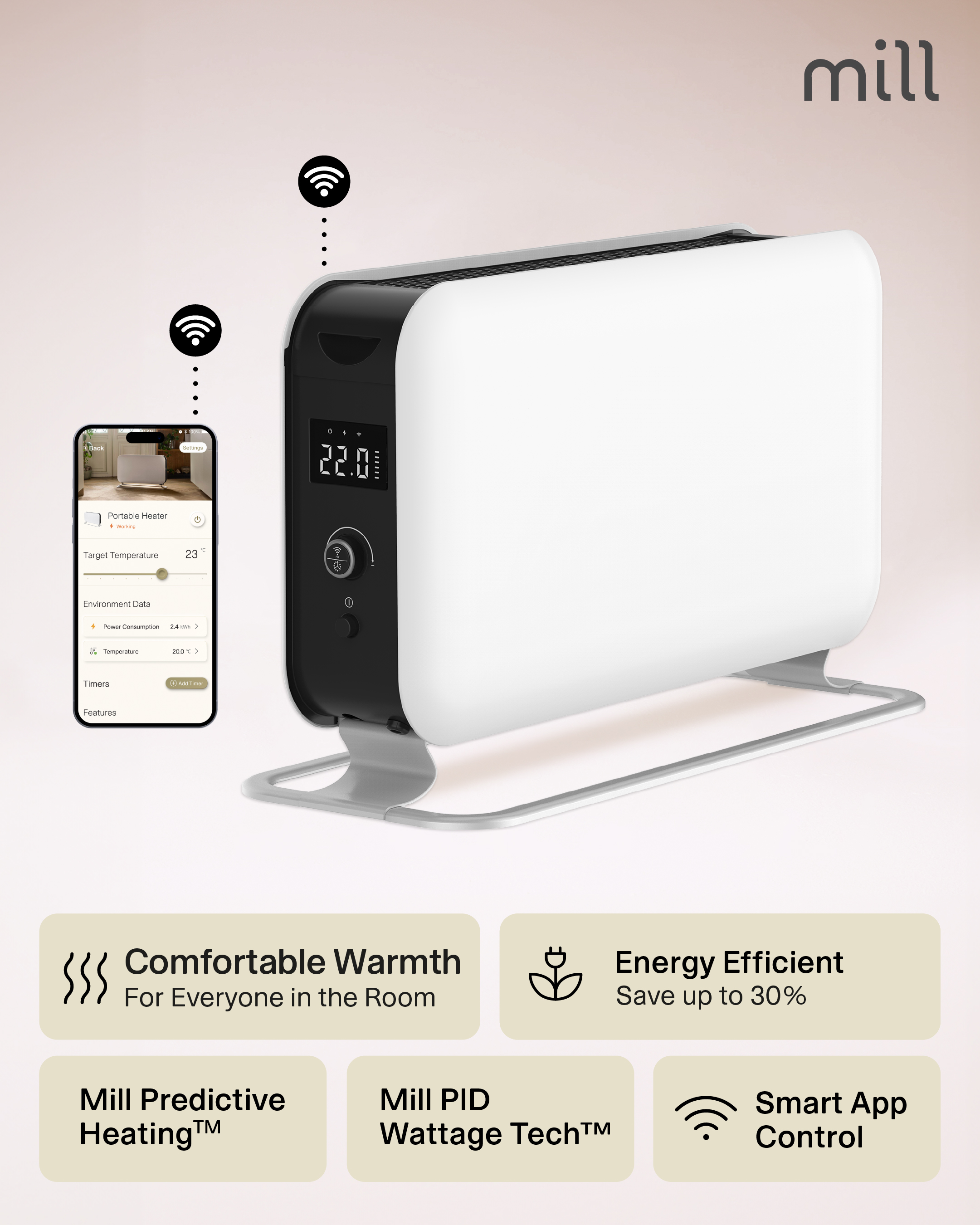 Mill | Portable Heater | CO1500MAXWIFI3 | Convection Heater | 1500 W | Suitable for rooms up to 14-18 m² | White | IPX4