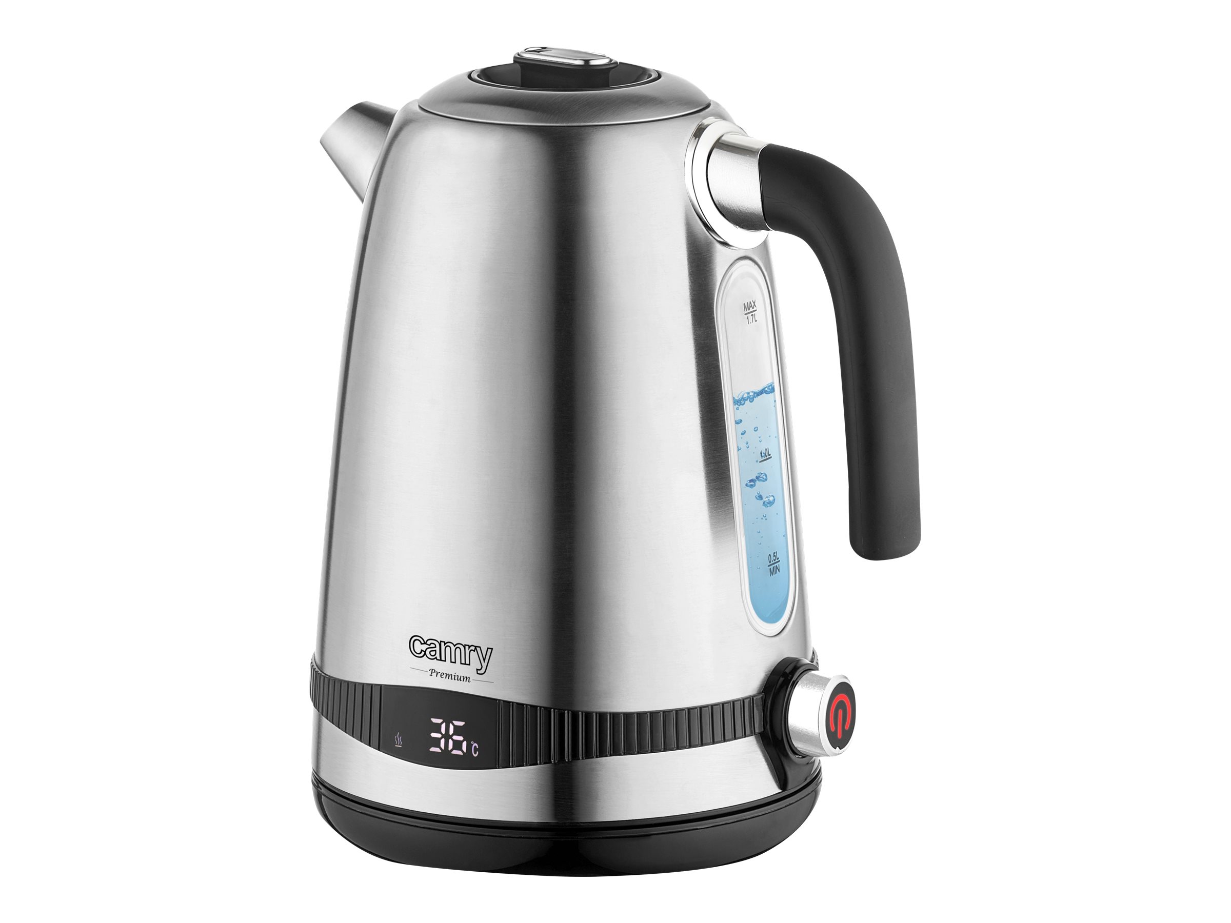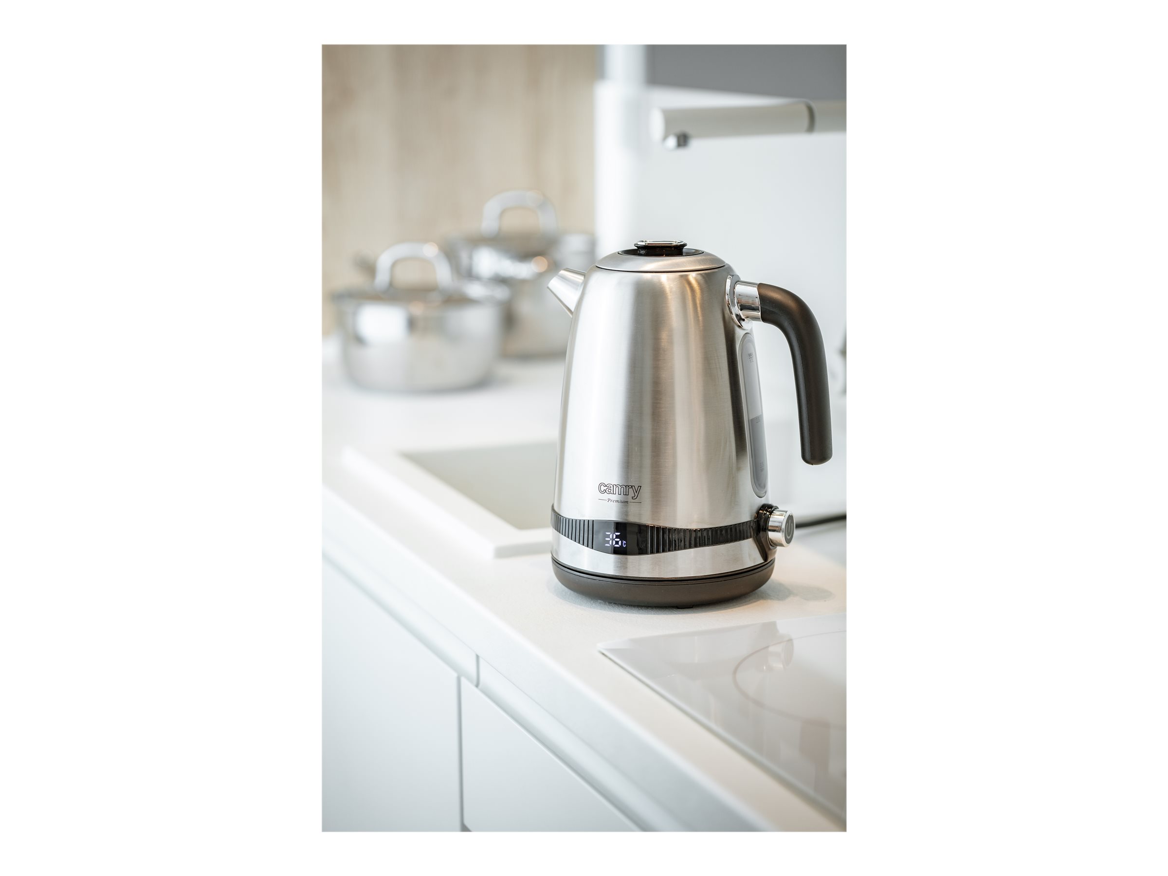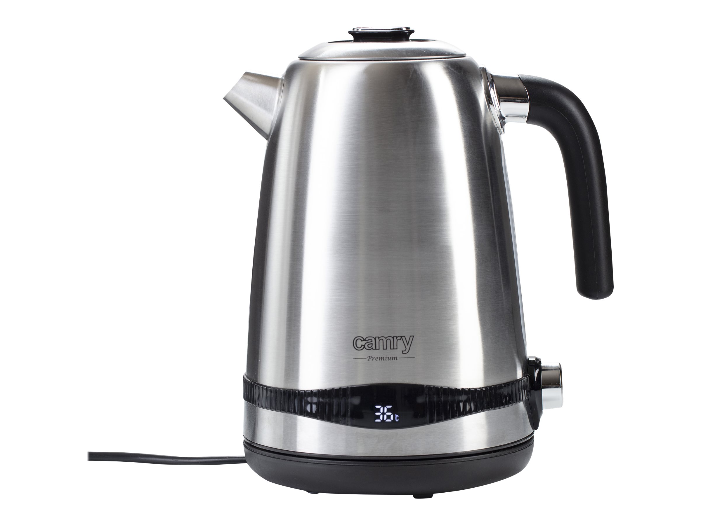 Electric kettle with LCD display & temperature regulation; LCD temperature display; Adjustable cooking temperature 40-50-60-70-80-90-100°C; Keep warm function 40-50-60-70-80-90-100°C; Beep when starting and after boiling; 2 hours keep warm function; Completely removable lid for easy cleaning
