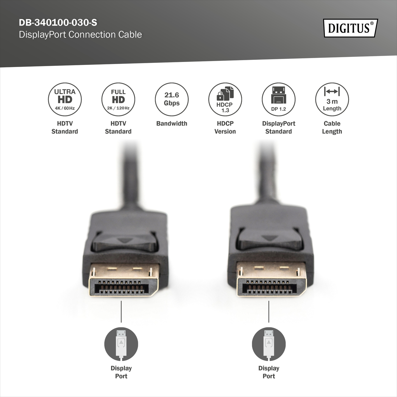 Digitus DisplayPort Connection Cable | DB-340100-030-S | 3 m